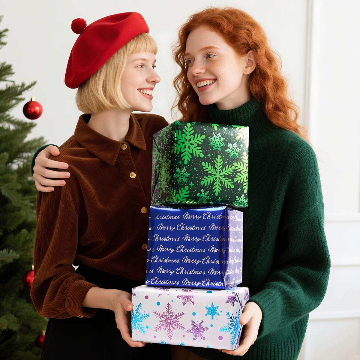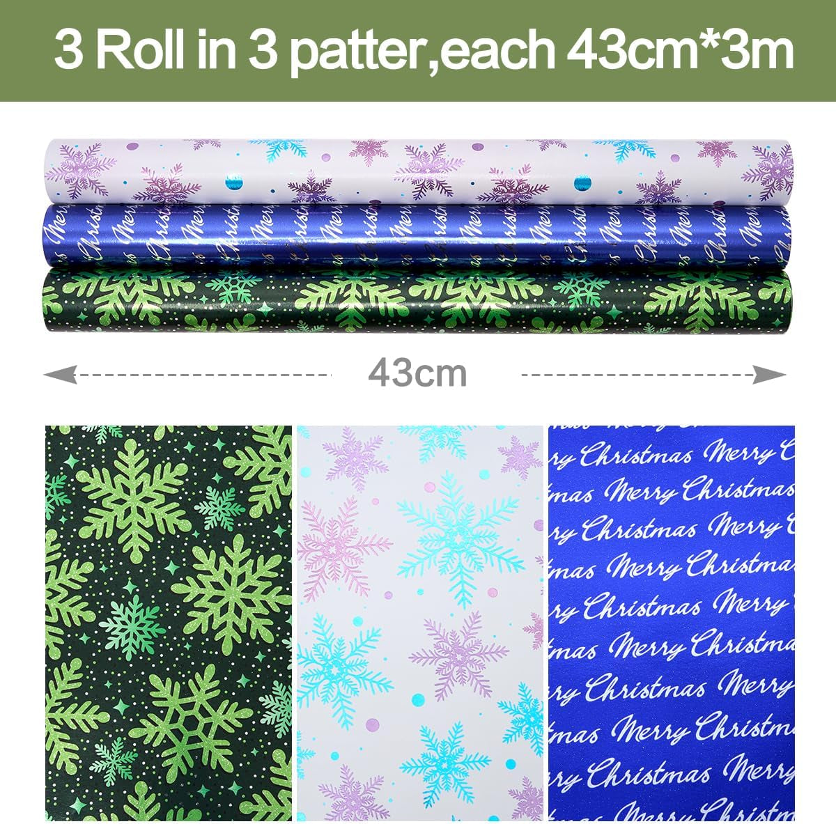 3 Rolls Gift Wrapping Paper for Christmas, 43Cm*3M Shine Wrapping Paper Print with Snowflake and “Merry Christmas”For Xmas, Birthday, Festival Party Gift Decoration - Multicolor-3 is backordered and will ship as soon as it is back in stock.