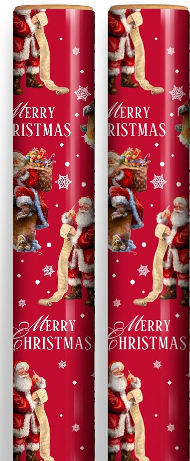 8m (2 x 4m) Traditional Christmas Gift Wrapping Paper - Red with Santa Father Christmas and White Snowflakes Merry Chrsitmas Approximate Size Of Each Roll: 4m x 69cm