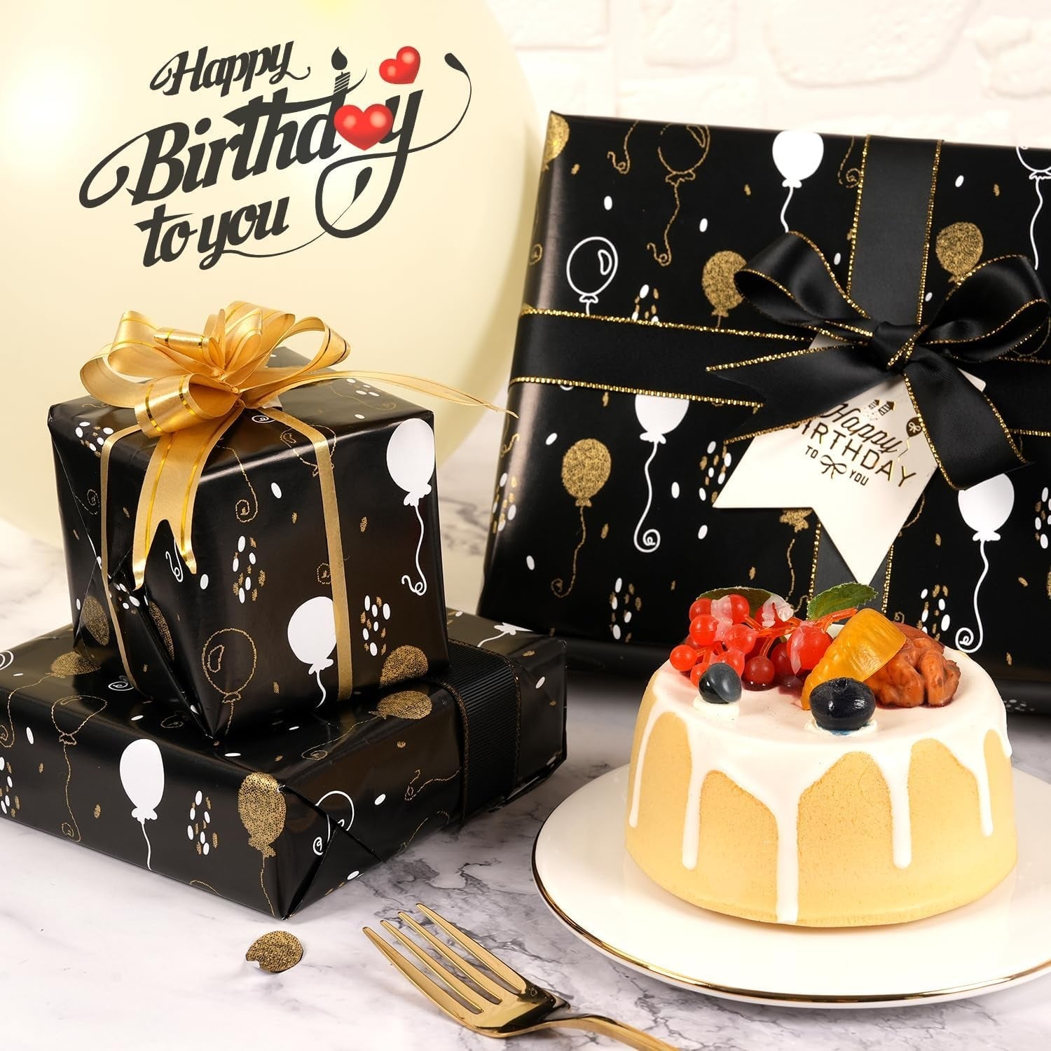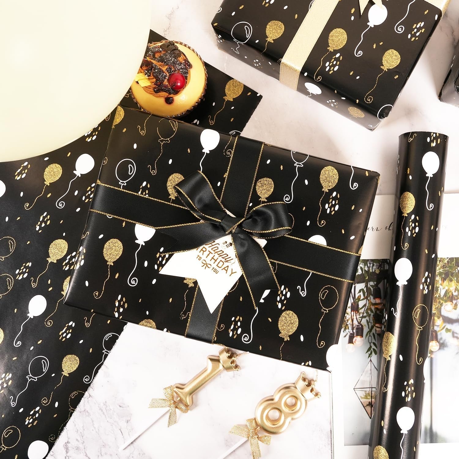 Black Birthday Wrapping Paper Roll - Metallic Dots and Balloon Design, 43Cm X 10M Black Gold Wrapping Paper for Women Men, Luxury Gift Wrap Paper for Birthday Christmas Wedding Baby Shower Party - Black Gold is backordered and will ship as soon as it is back in stock.