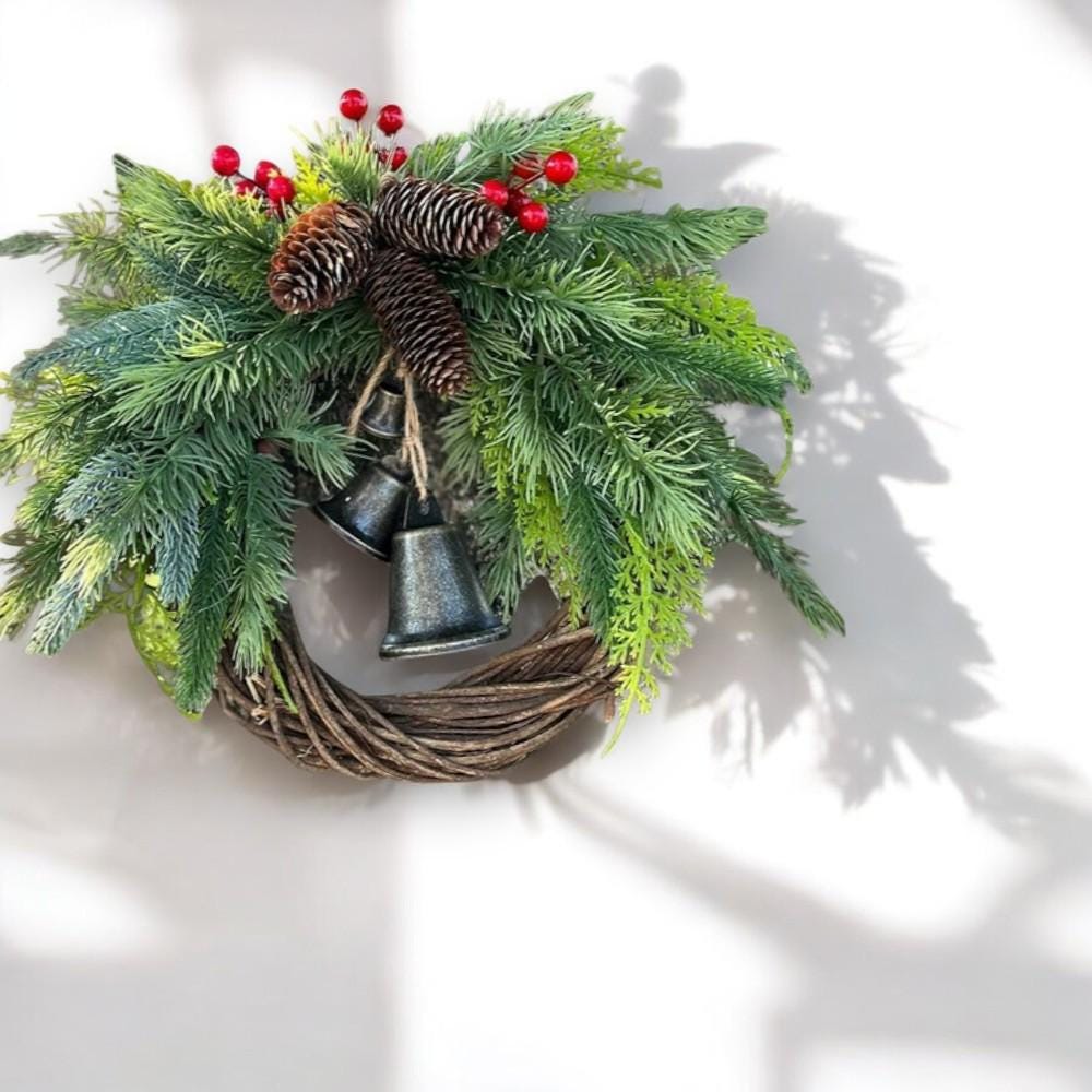 Christmas Rustic Bell Wreath, Festive Bell Christmas Wreath
