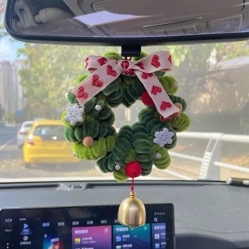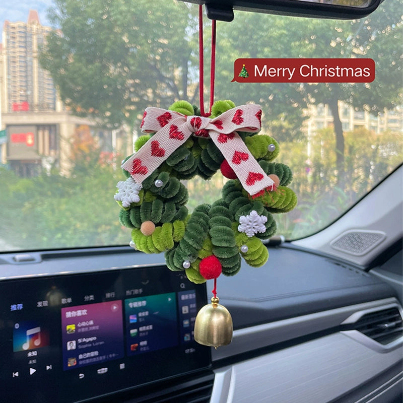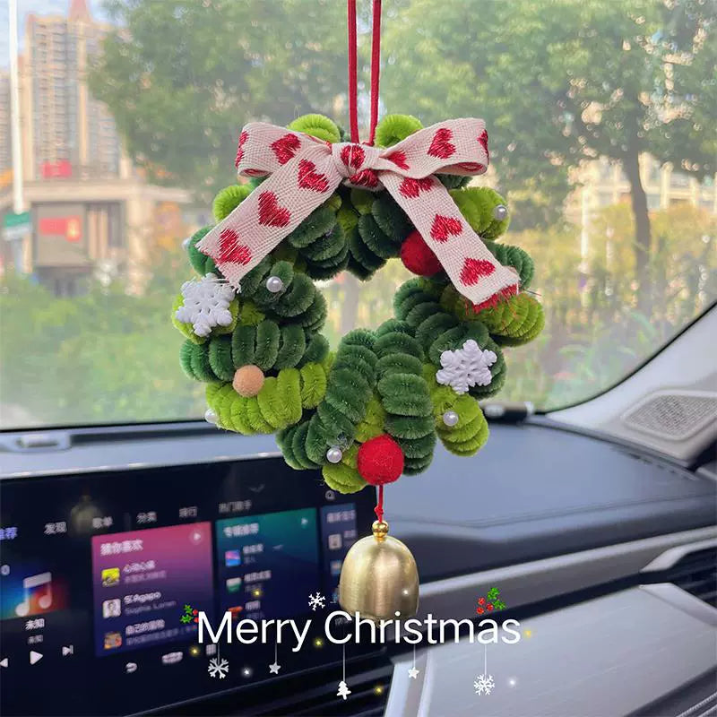 Christmas wreath car pendant twist stick handmade DIY car hanging ornaments
