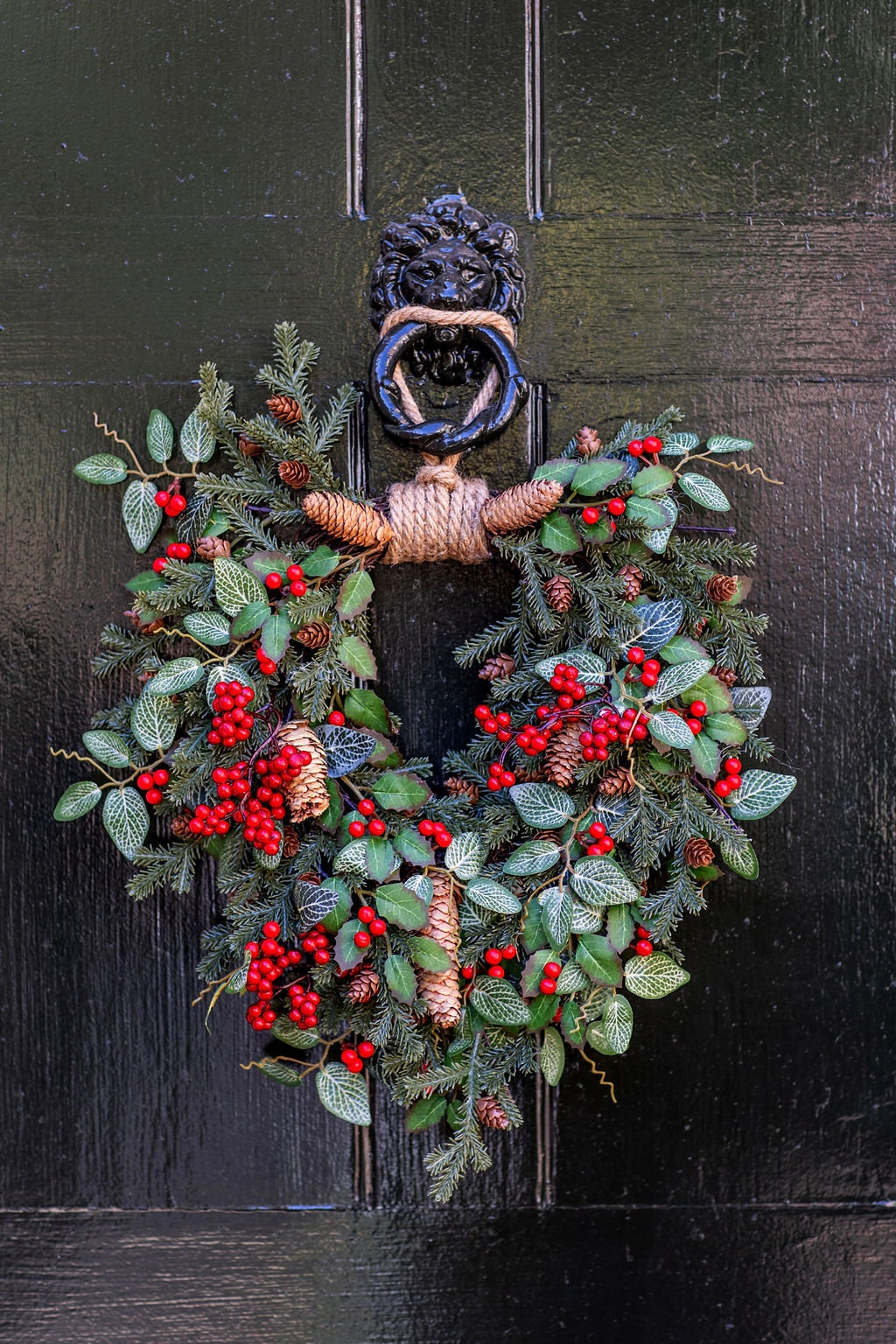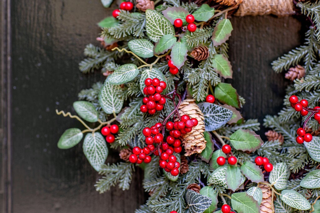XMAS FAUX WREATH, Red Berry Wreath, Full Faux Wreath