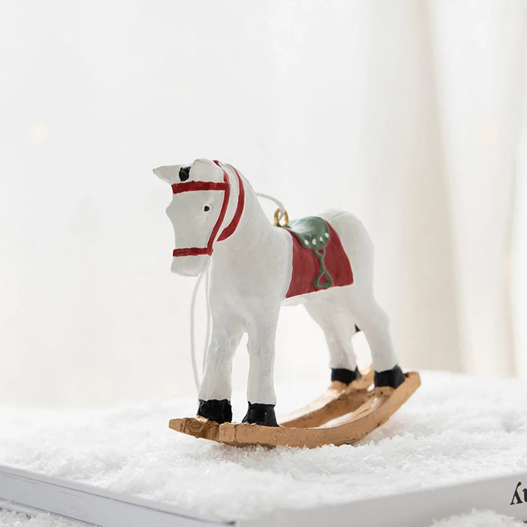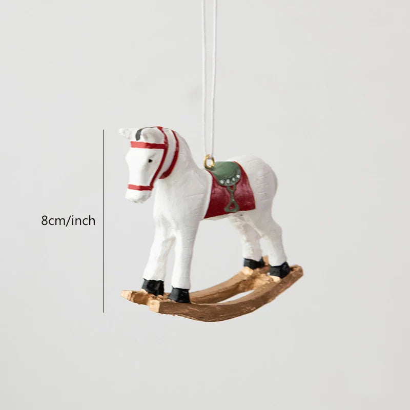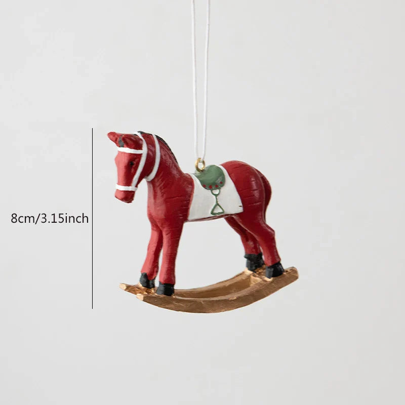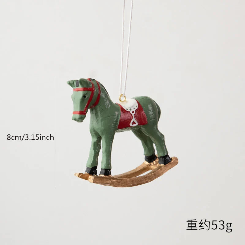 1 piece, resin Christmas rocking horse ornament Christmas tree wreath decoration Christmas party decoration