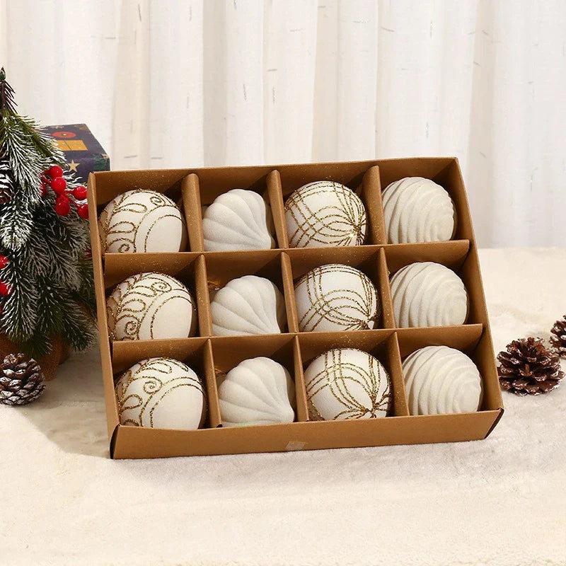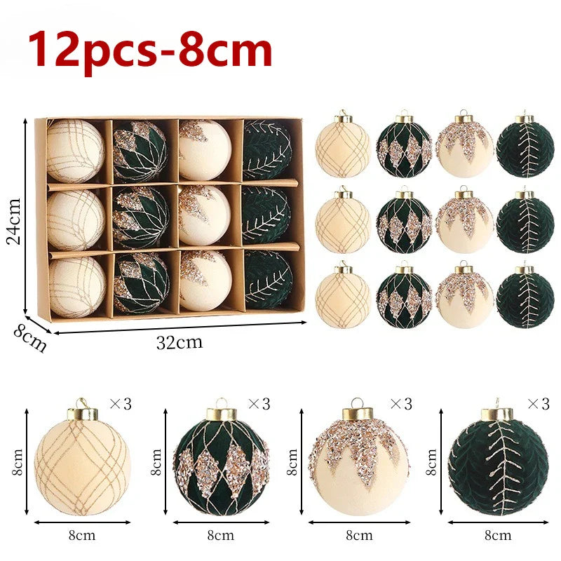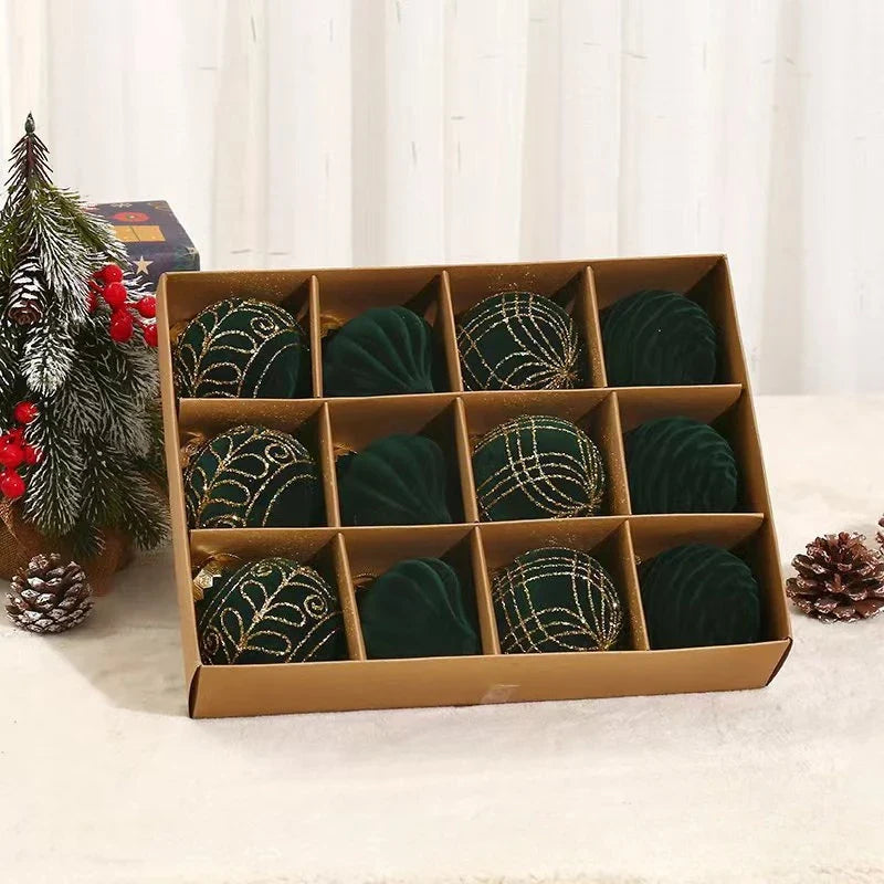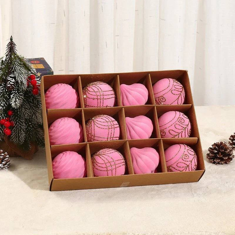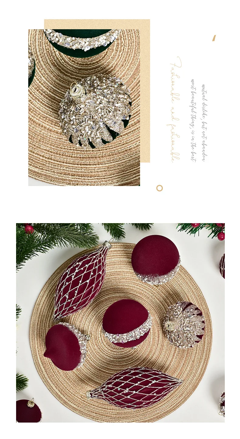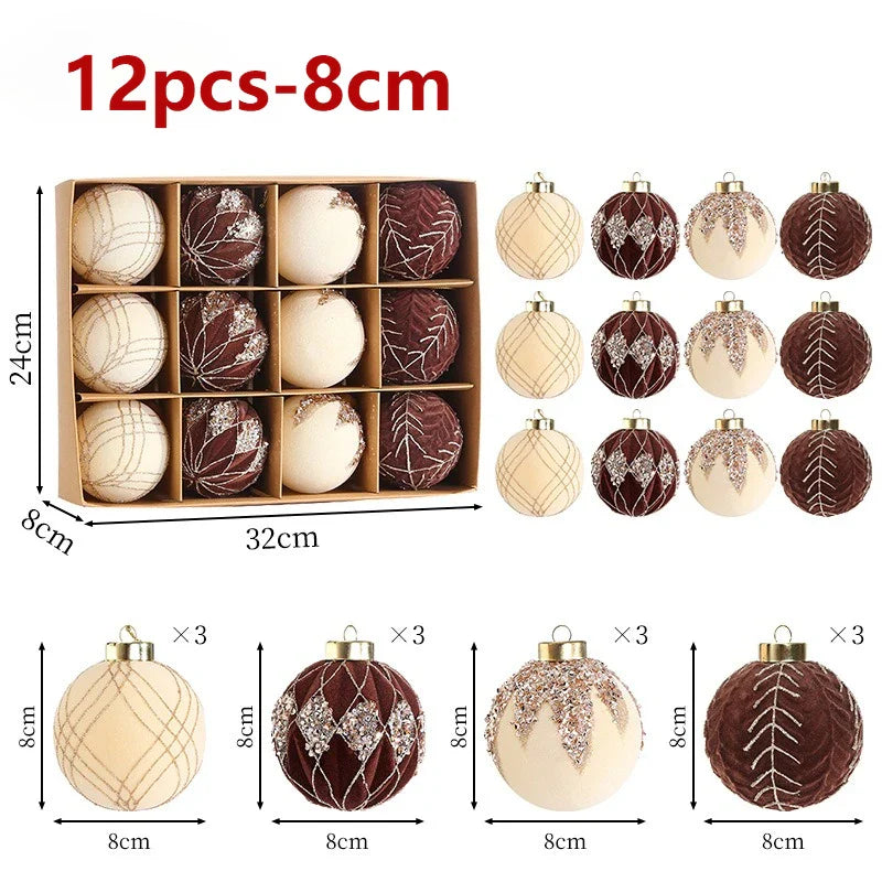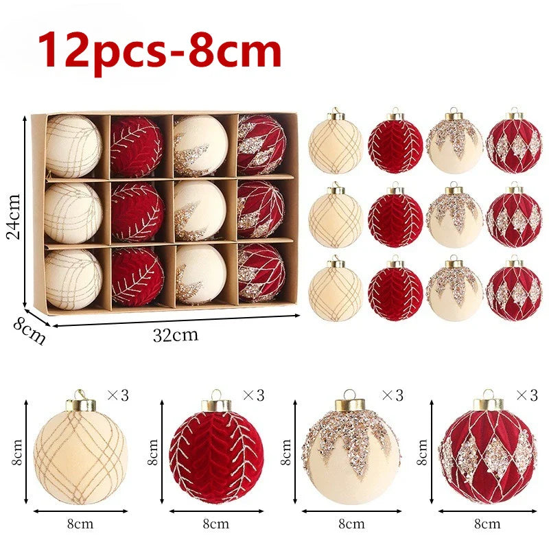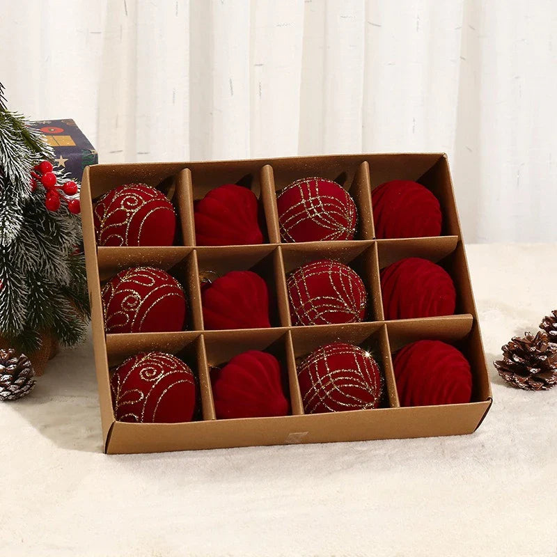 10/12pcs 8cm Christmas Ball Ornaments Wine Red Flocking Christmas Tree Party Decoration Luxury New Christmas Spheres Pendant