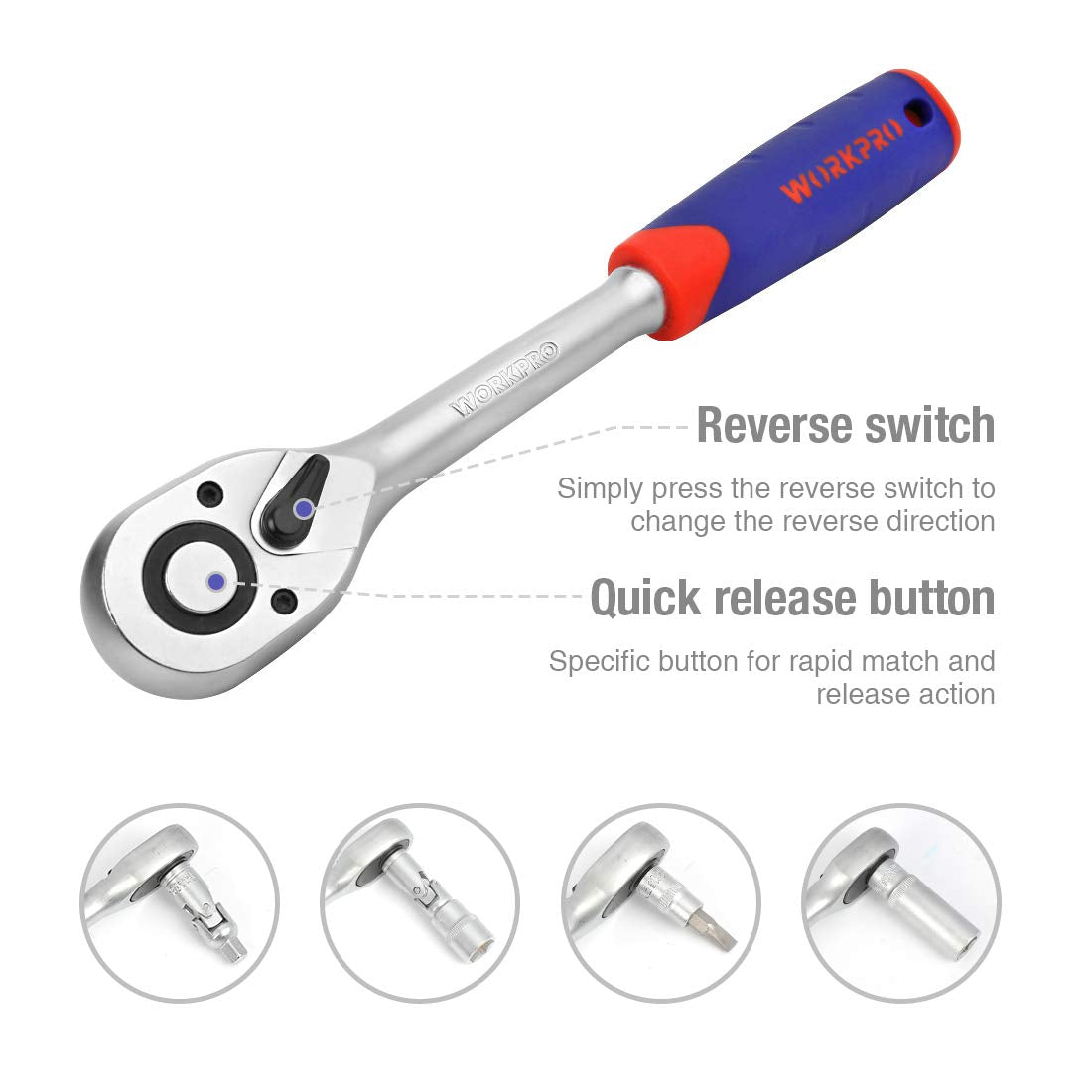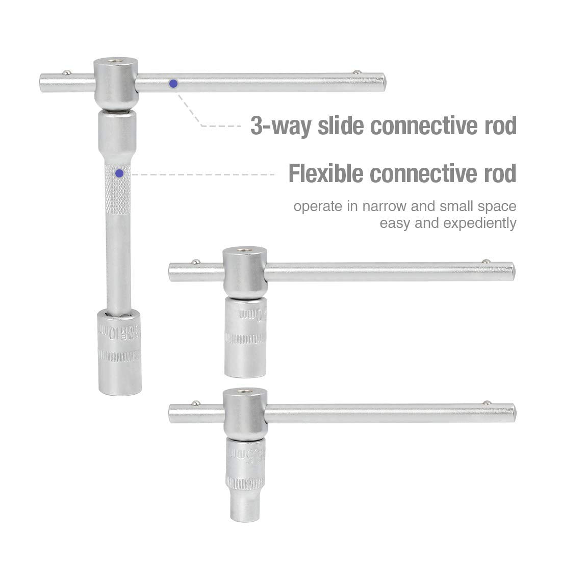 1/2" DR. Sockets: 17pcs Short Hex Socket: 10-32 mm; Deep Hex Socket: 14, 15, 17, 19, 22 mm; E-torx Socket: E10, E11, E12, E14, E16, E18, E20, E24; Spark Plug Socket: 16 mm, 21 mm