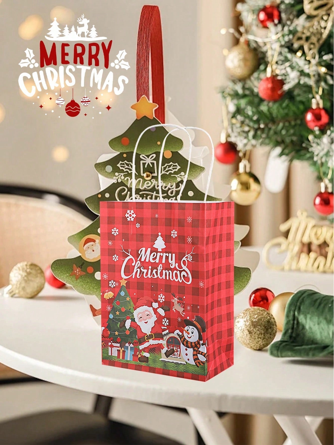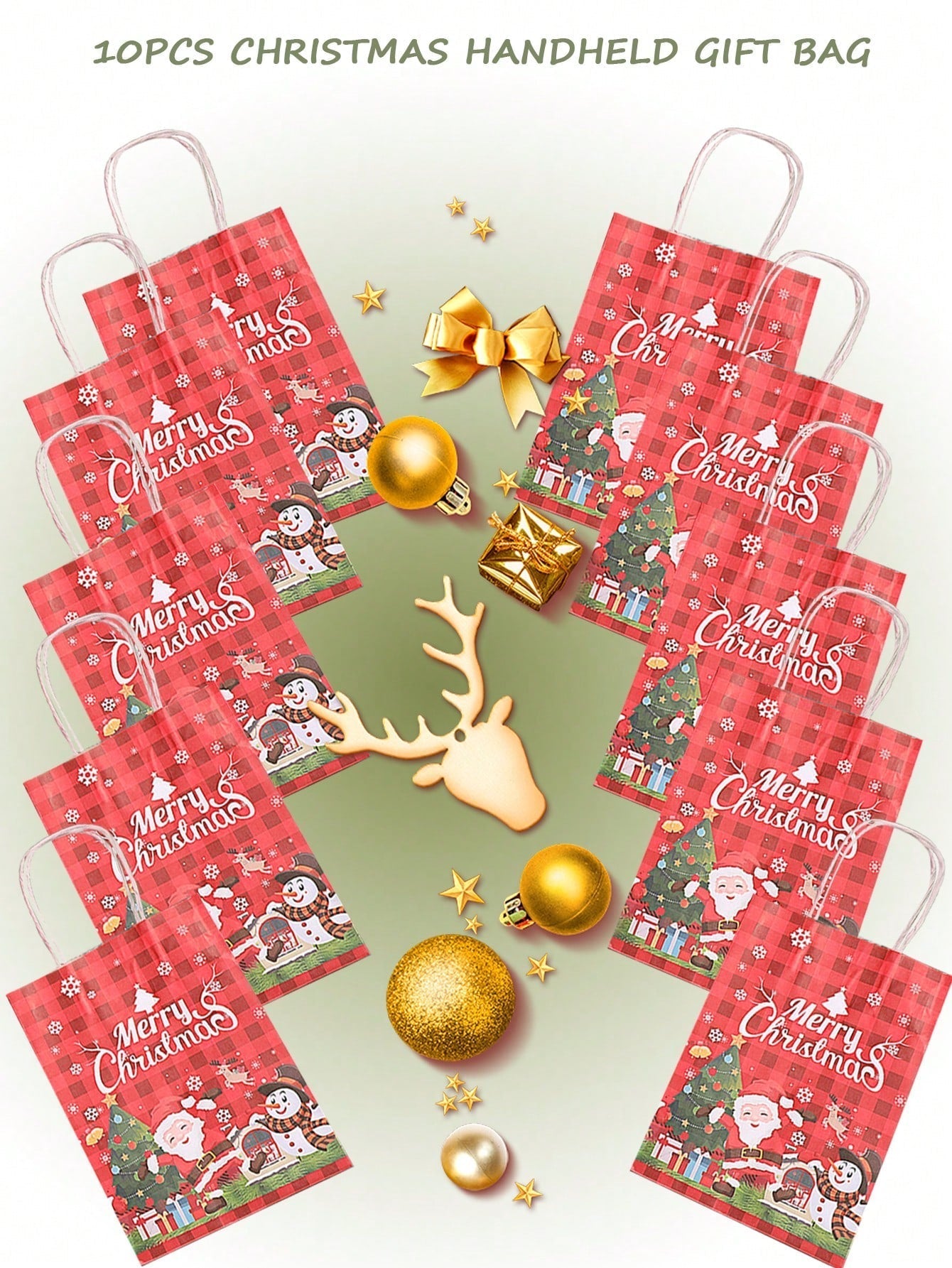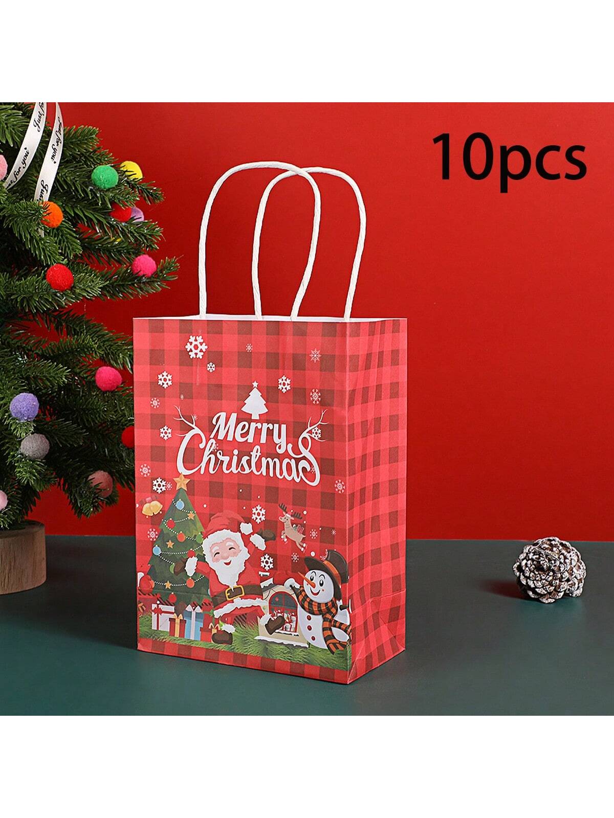 10pcs Christmas Hand-Held Gift Bags, Holiday Party Candy Packaging