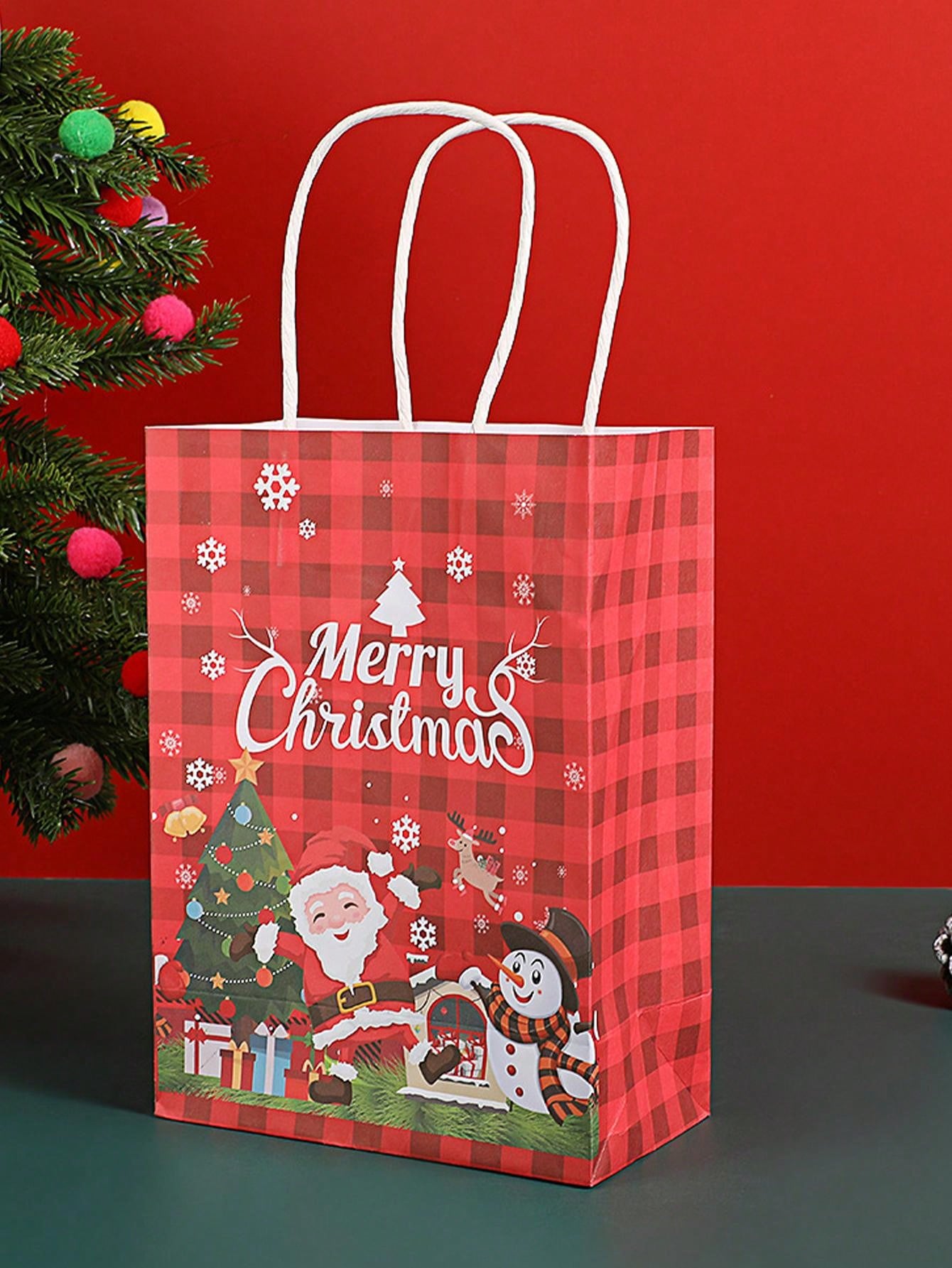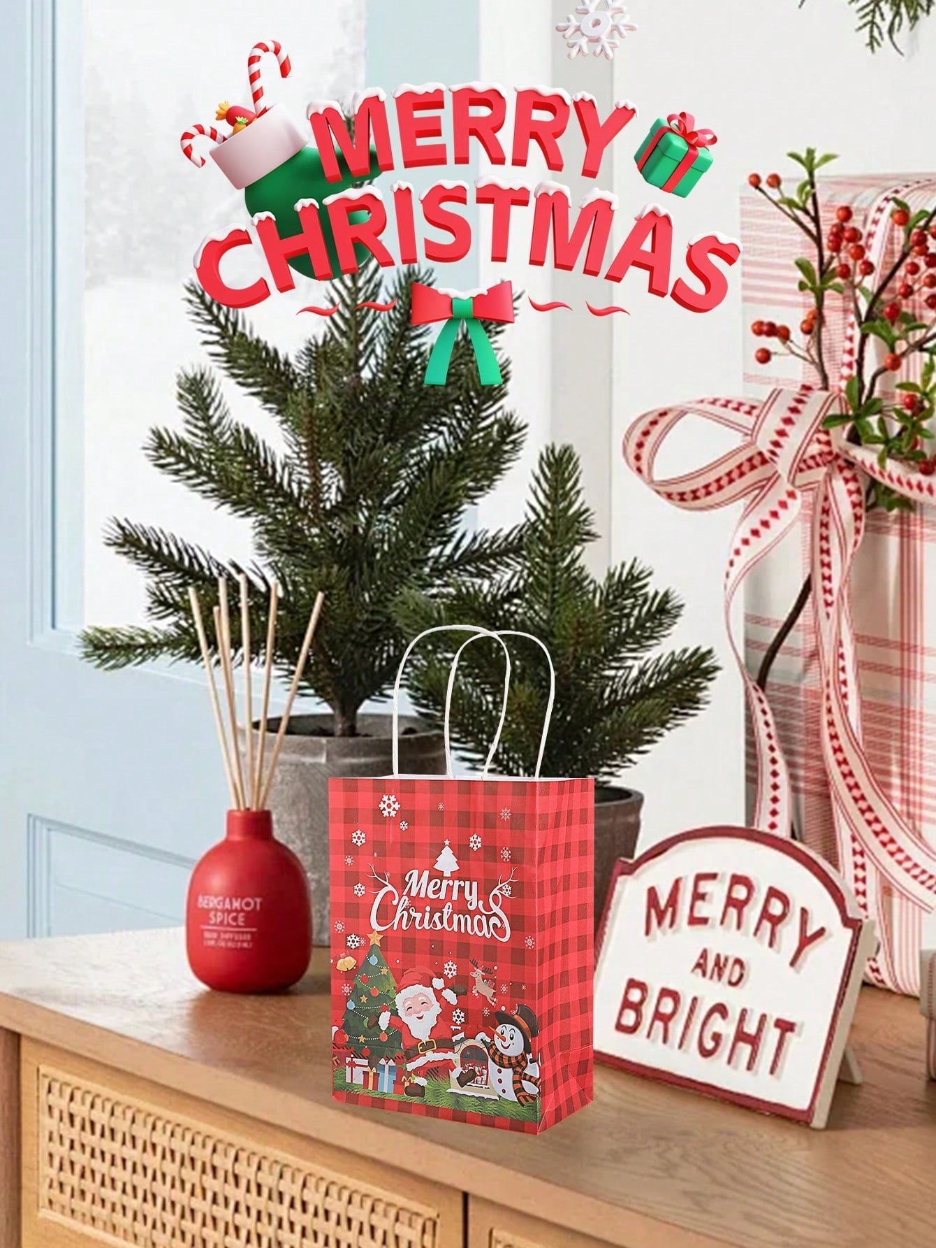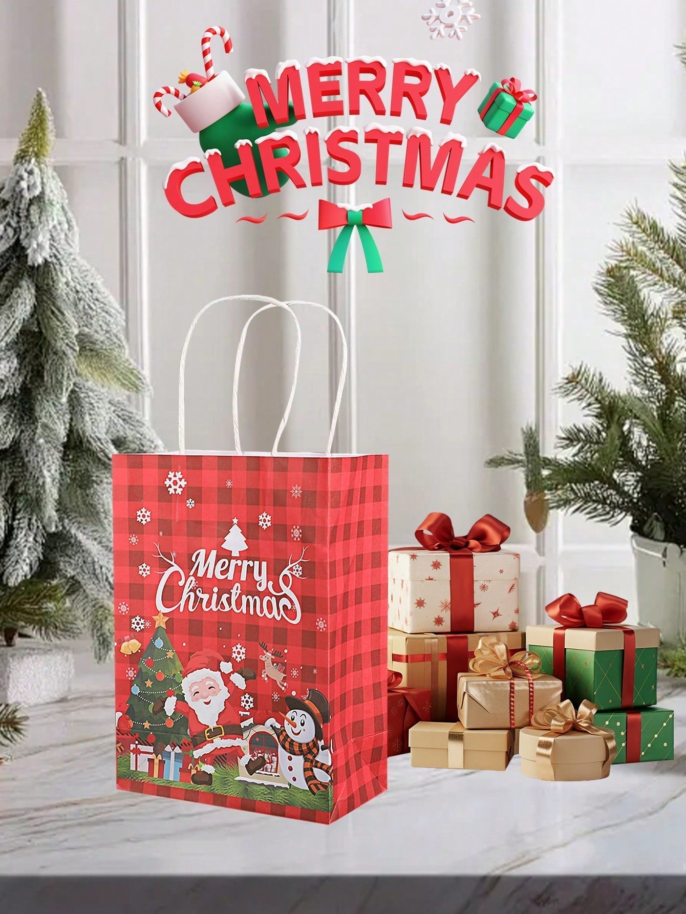 10pcs Christmas Hand-Held Gift Bags, Holiday Party Candy Packaging