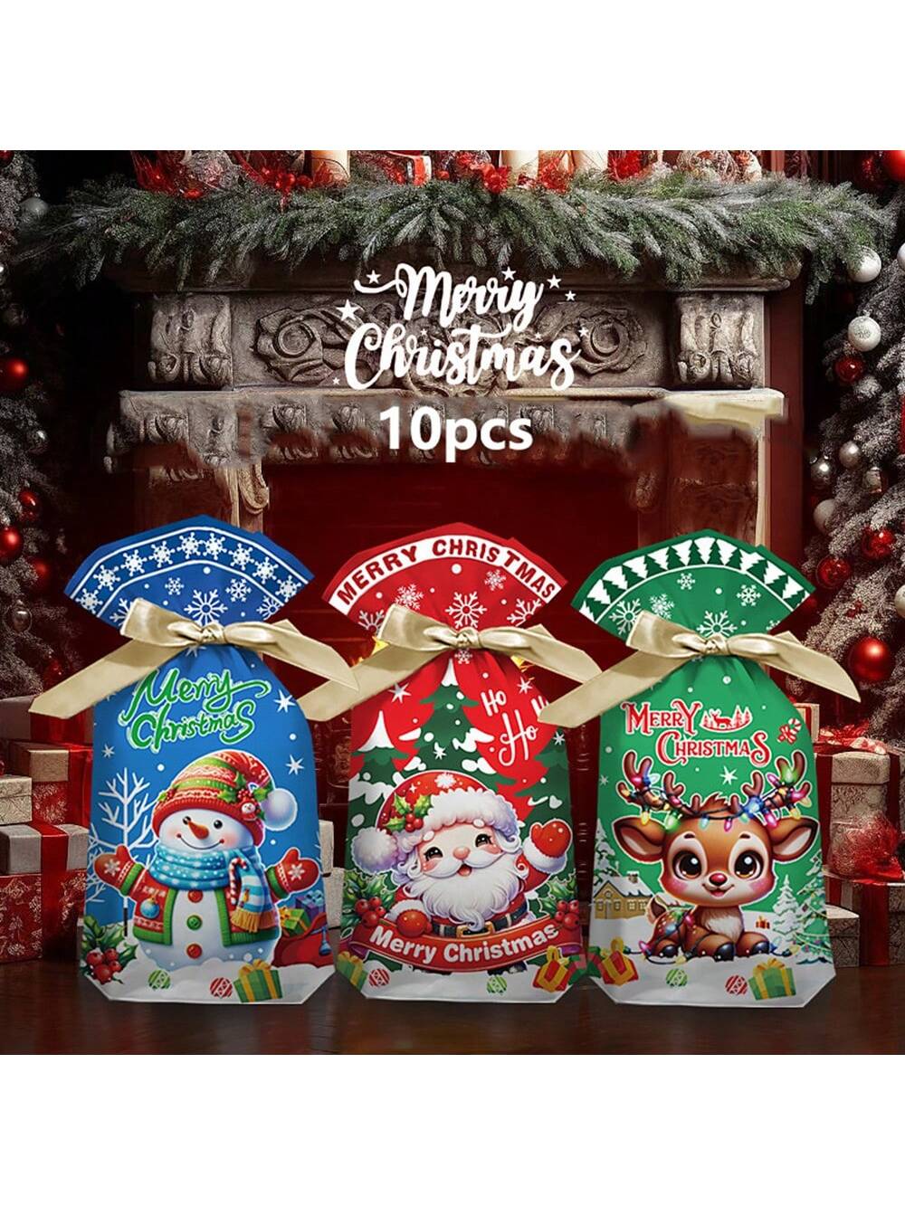 10pcs Mixed Christmas Candy Gift Bags With Drawstring - one-size is backordered and will ship as soon as it is back in stock.