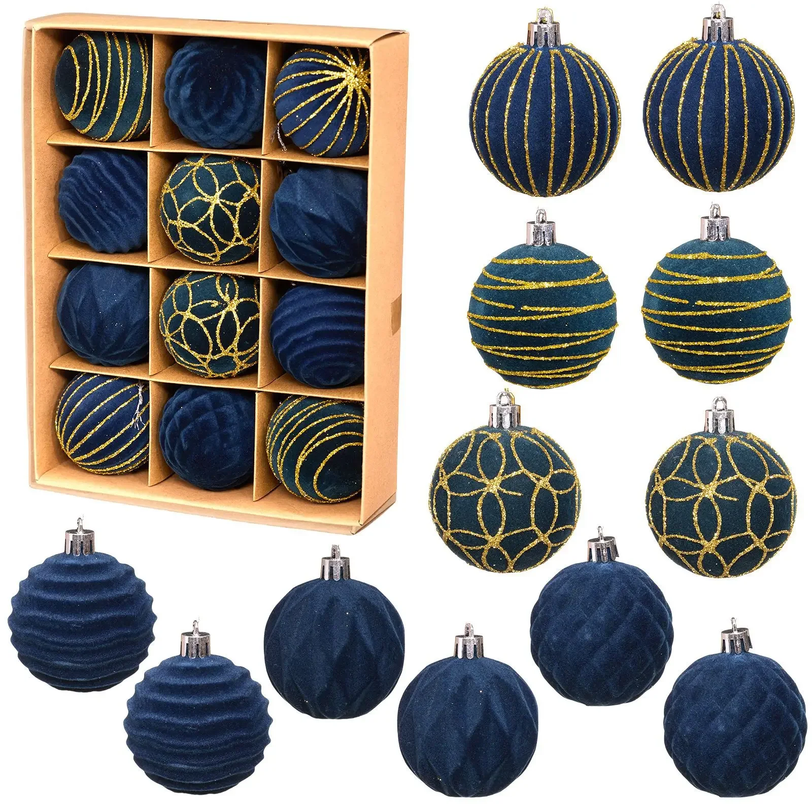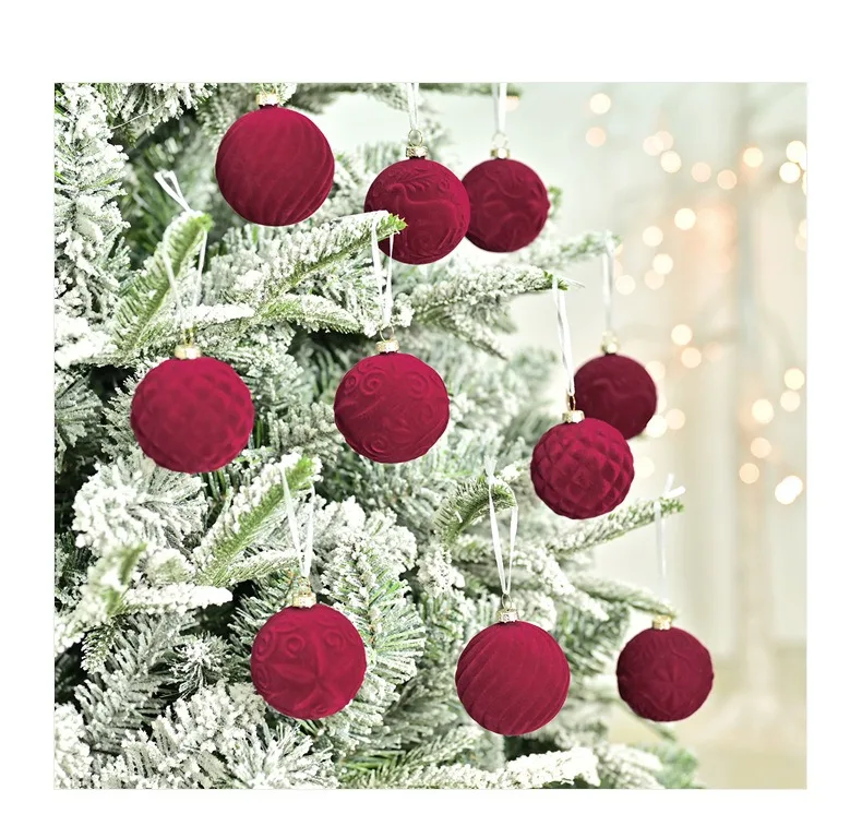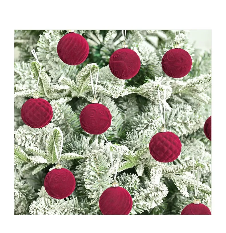 12/20Pcs 6cm Christmas Balls Flocking Special-shaped Xmas Decorative Hanging Ornaments Christmas Spheres Pendant 2025