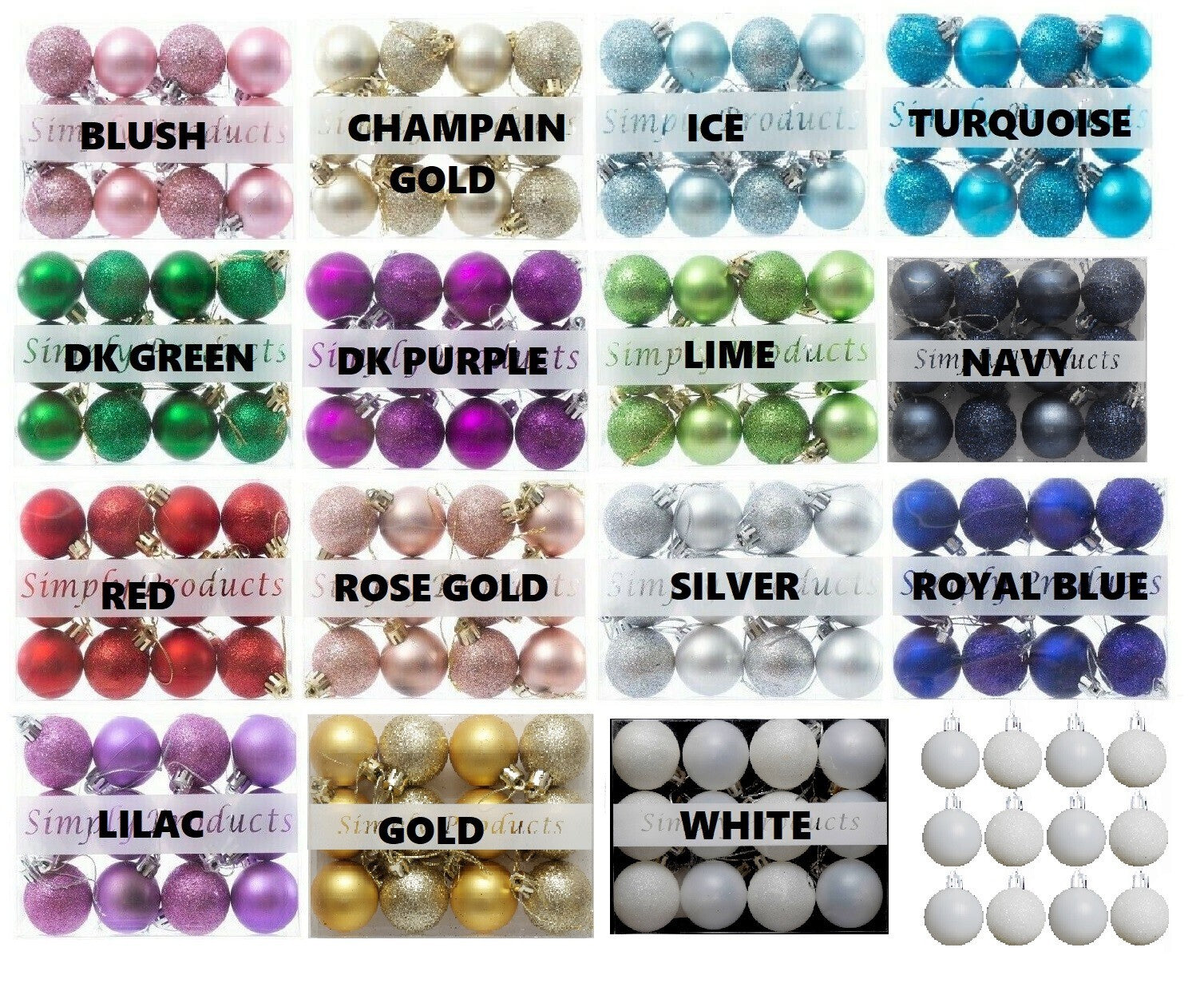 Christmas Decoration 12 Pack 3.8cm Glitter / Shiny Baubles