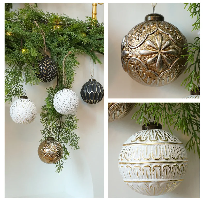 12pcs 8cm Antique Christmas Balls Luxury Xmas Decorative Hanging Ornaments New Year Party Christmas Spheres Pendant Set