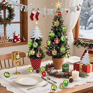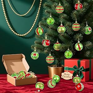 Unique Christmas Ball Ornaments: These Christmas ball ornaments feature with classic animated character,polka dot, Christmas tree and snowflake elements. The red and green elegant glittering design is even more eye-catching.