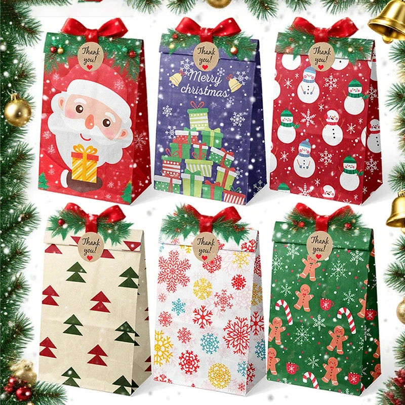 12pcs Merry Christmas Santa Claus Snowflakes Pattern Candy Gift Packaging Bags Happy Birthday Xmas Celebration Party Supplies - Style B / Other is backordered and will ship as soon as it is back in stock.