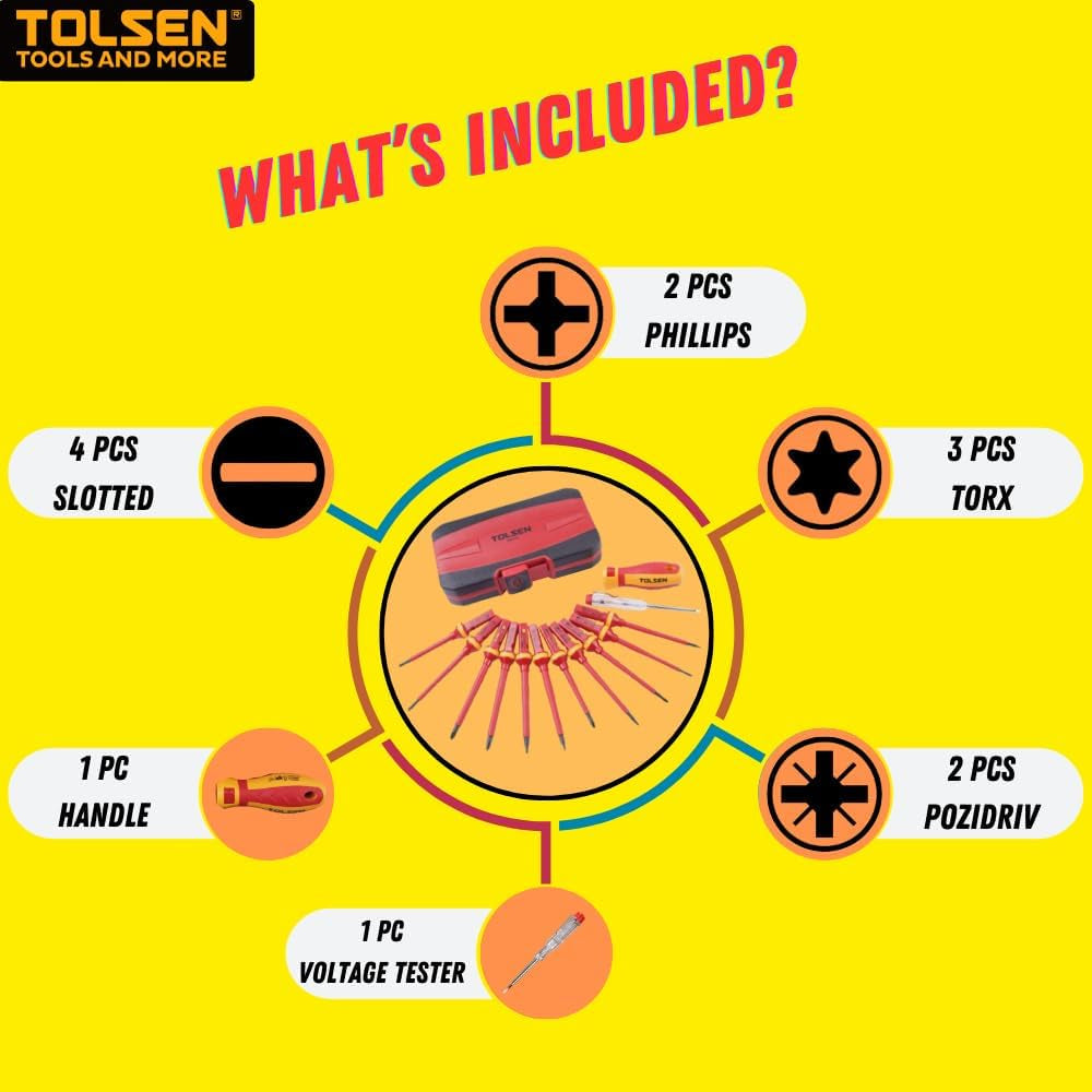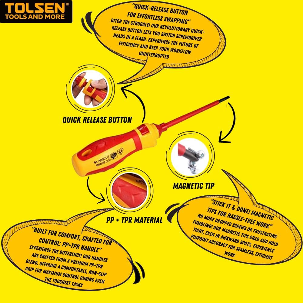 13Pcs VDE Insulated Electricians Screwdriver Set with Rubber Handle in Hard Case | Interchangeable | Magnetic Tips | 1000V | Ideal for Electrical, Home and DIY Projects
