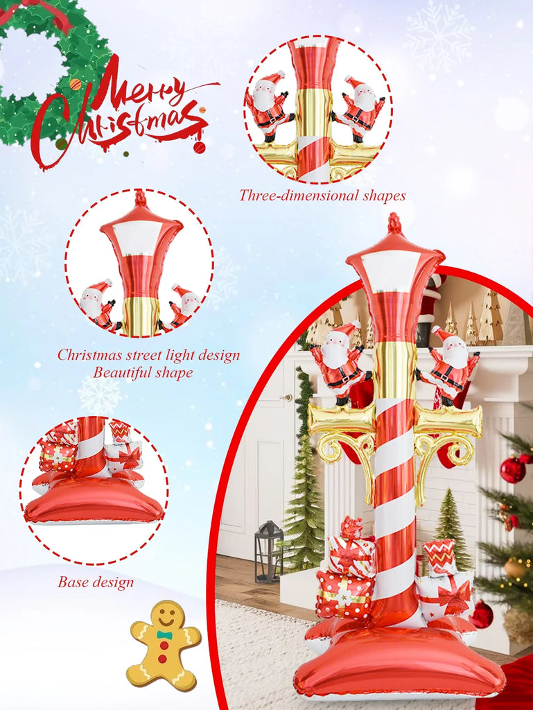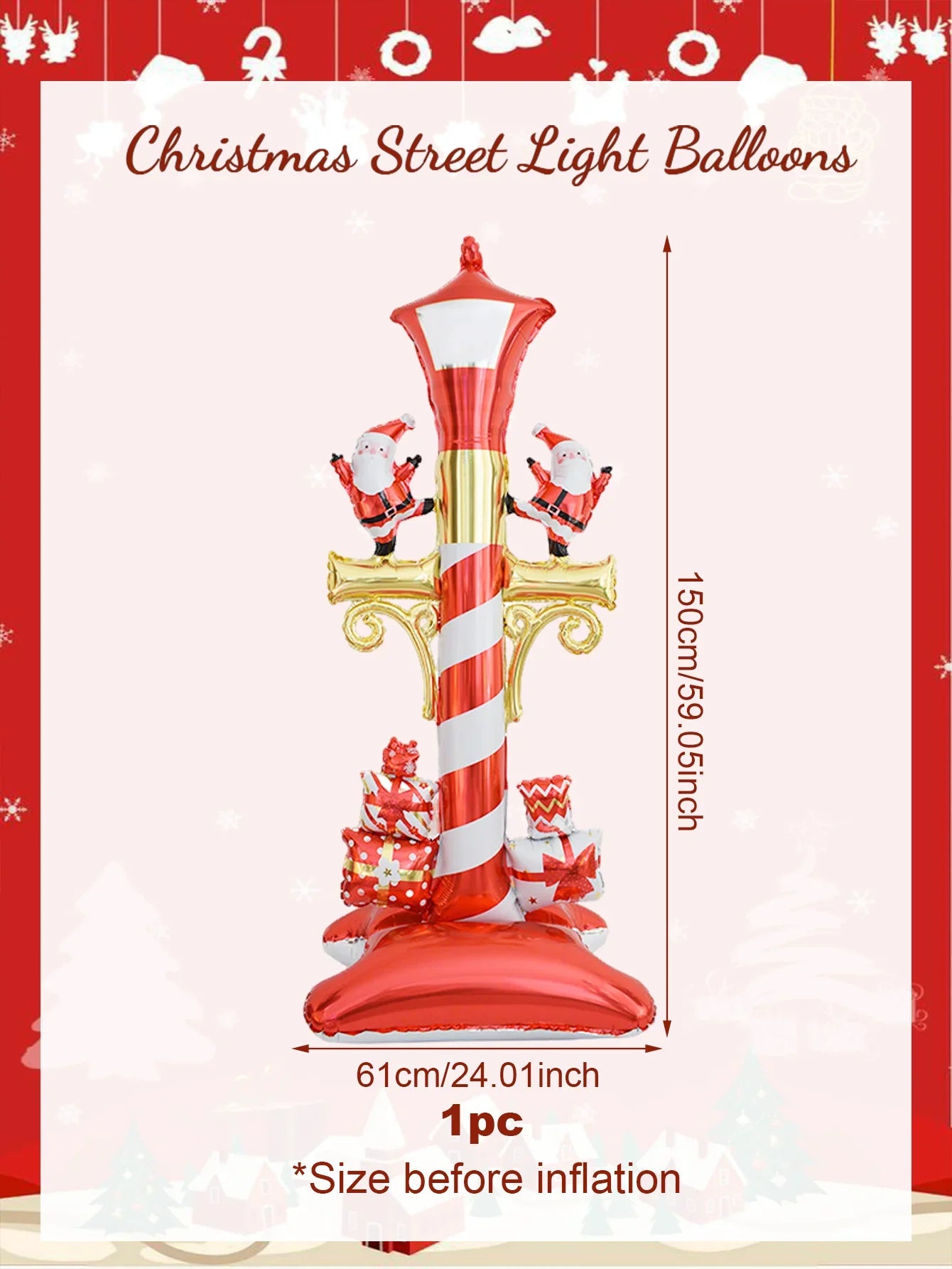 1pc large standing Christmas street light balloon, suitable for Christmas theme events and scene decoration, New Year party