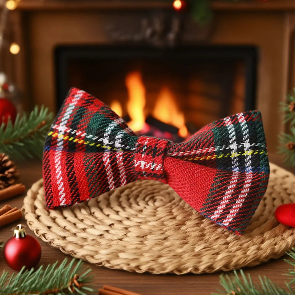 1pc-Pet Cat Collar Bow Cute Checkered Christmas Red Elastic Adjustable Dog Collar - As Picture shows is backordered and will ship as soon as it is back in stock.