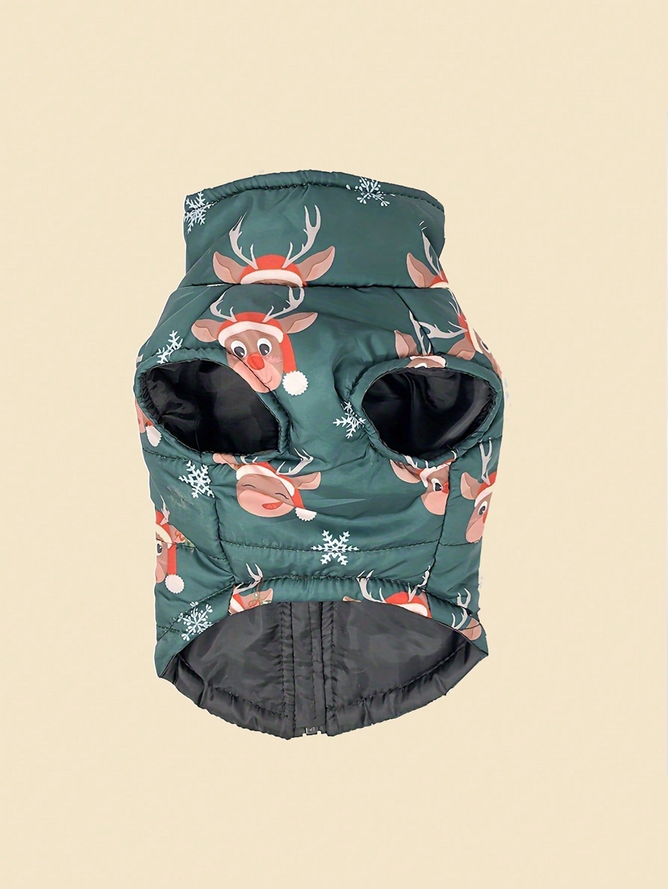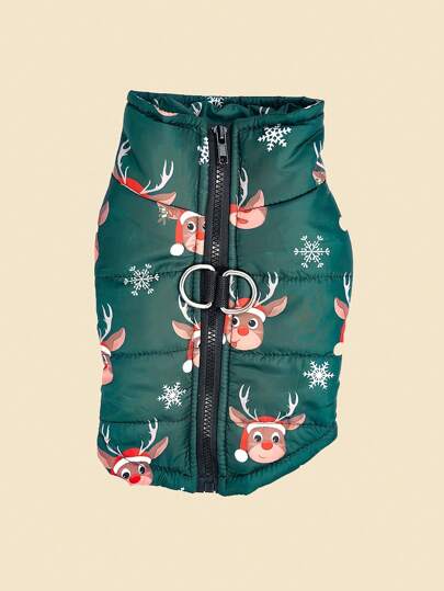 1pc Pet Christmas Printed Windproof & Warm Jacket - S / Green is backordered and will ship as soon as it is back in stock.