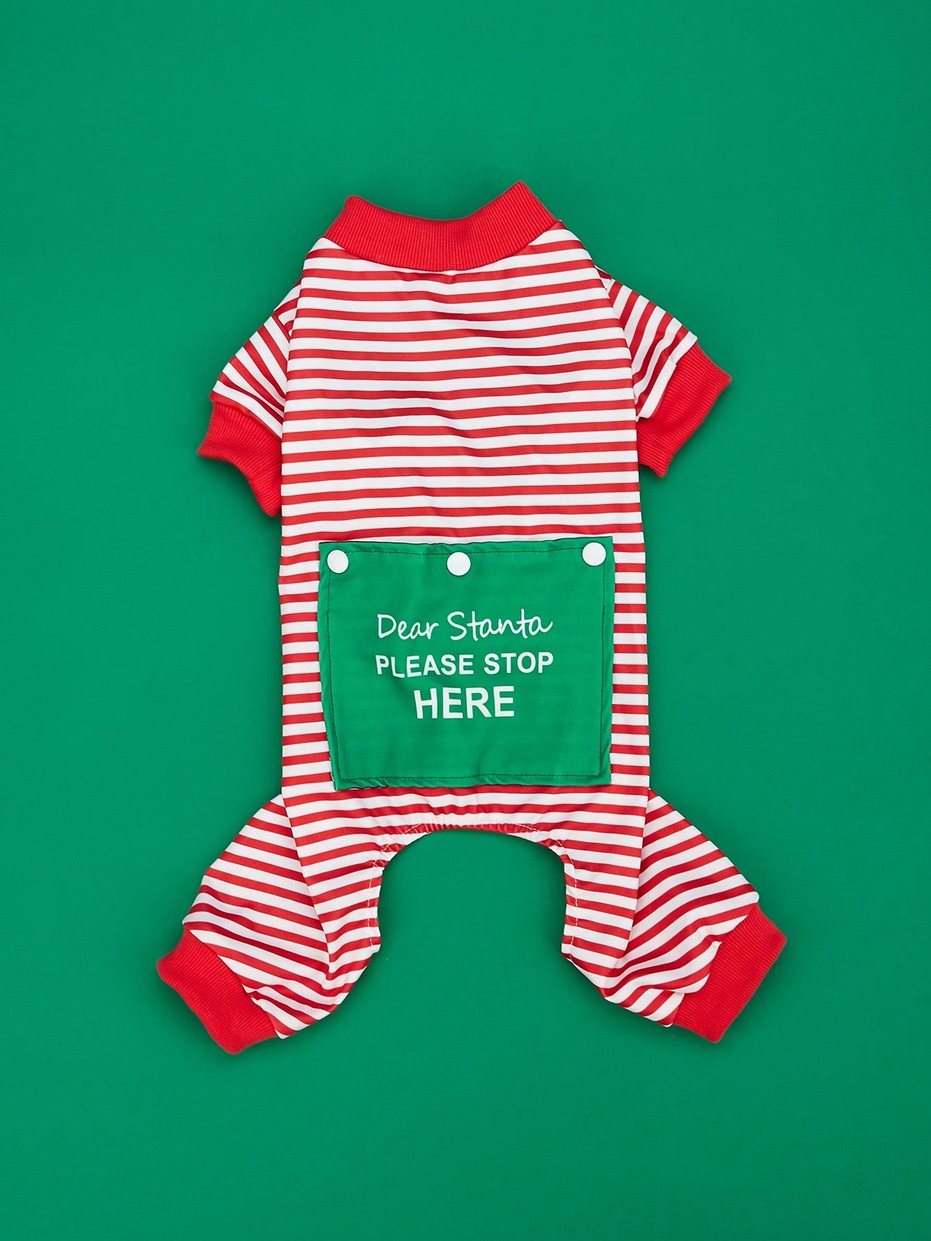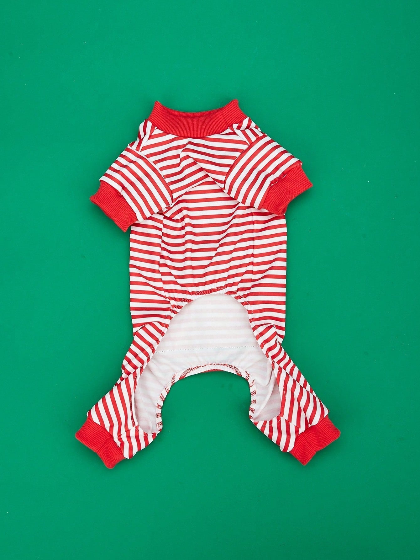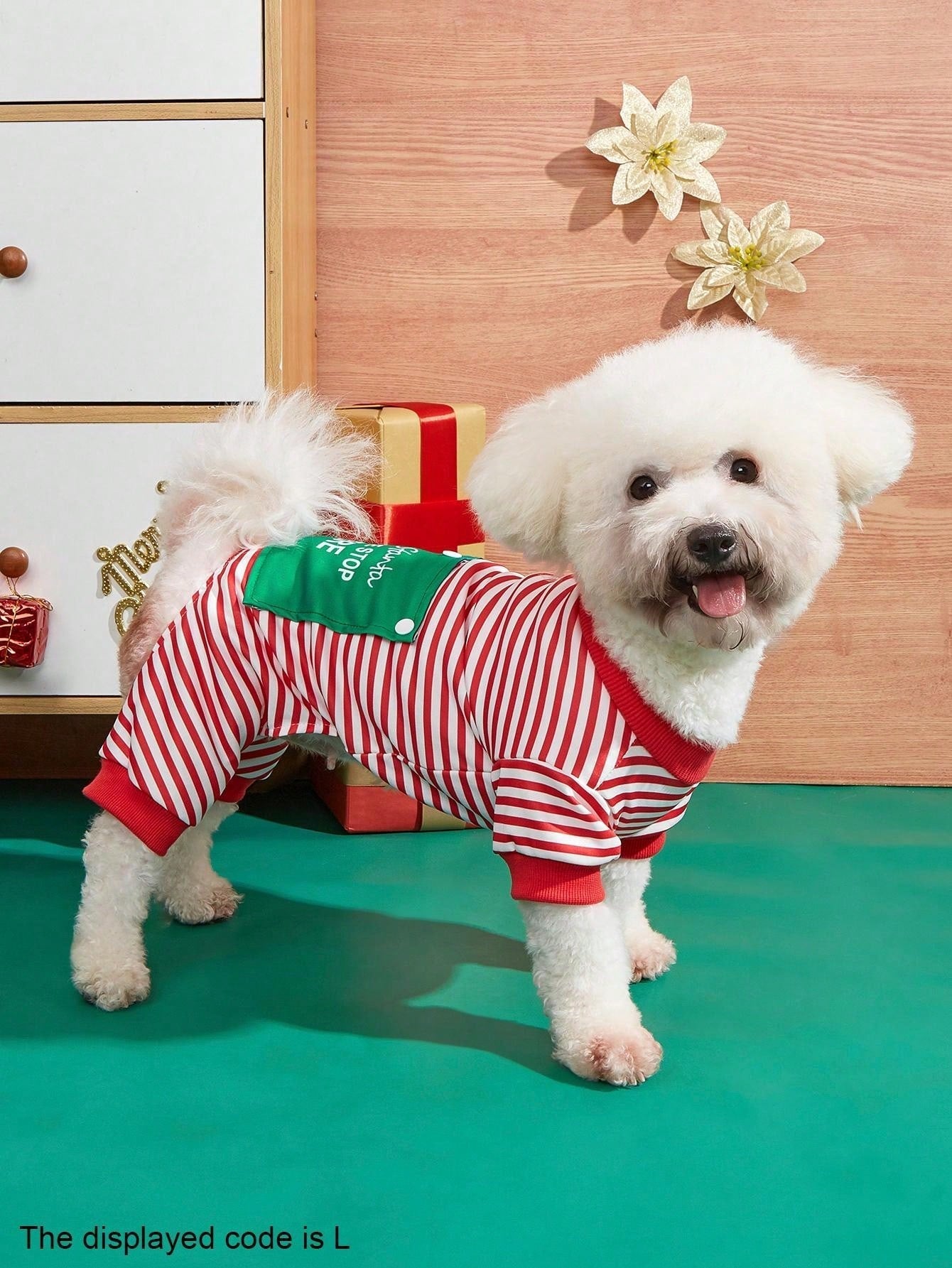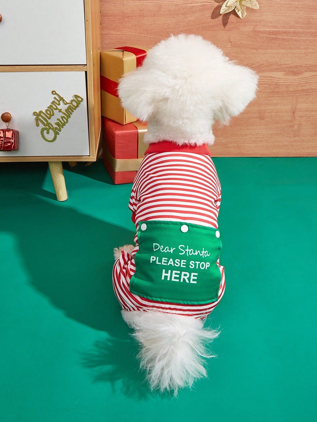 1pc Pet Christmas Striped Print Four-Leg Clothes, Suitable For Cats And Dogs