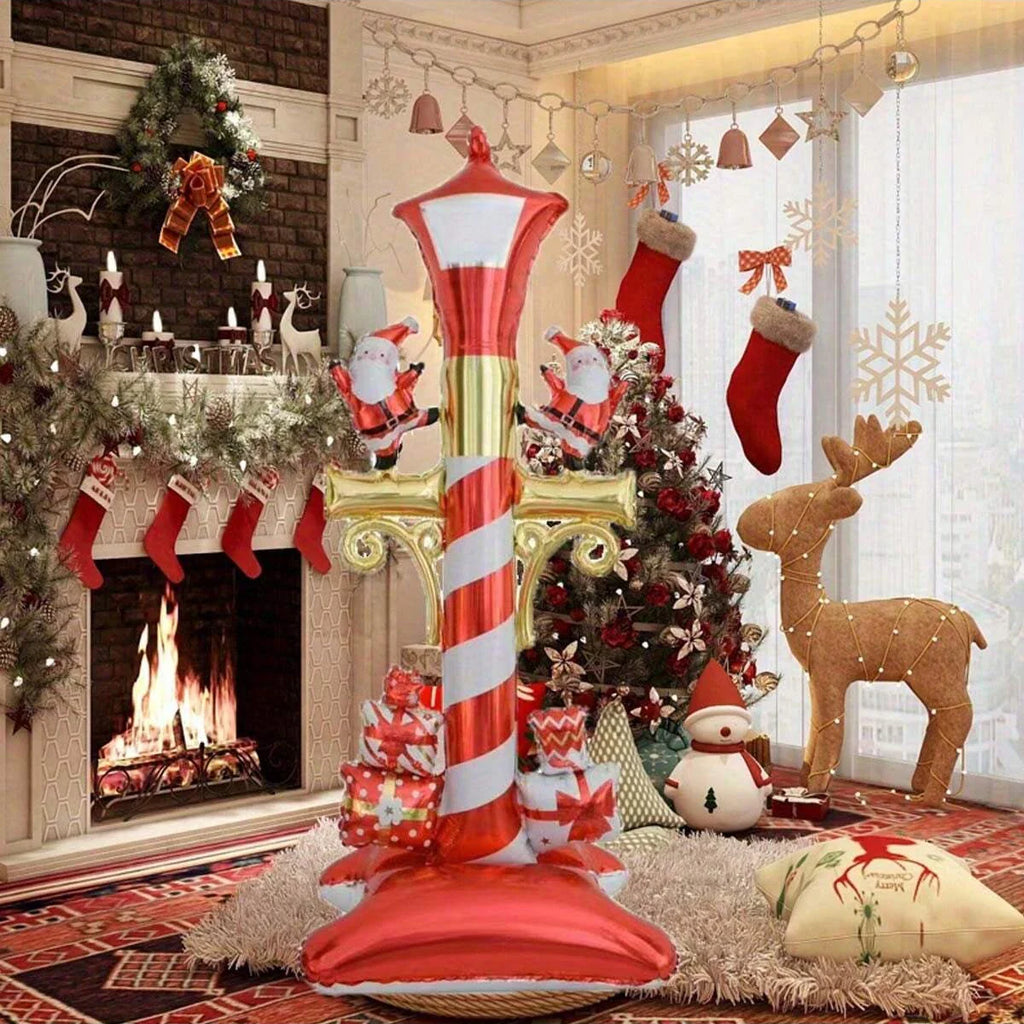 1pc Standing Christmas Tree-Shaped Aluminum Foil Balloon, Red & Golden Festive Design with Santa, Snowmen, Christmas Decorations
