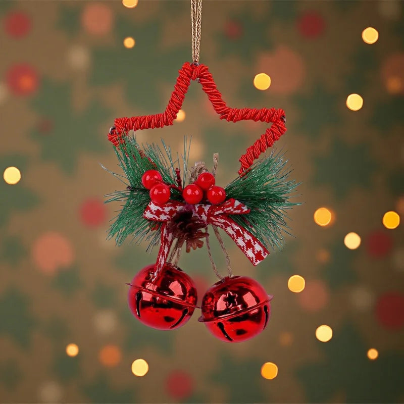 1.Classic Christmas Elements:This red five - point star bell Christmas accessory combines a star shape, bells, a bow, pine branches, and berries.These classic Christmas elements create a strong festive atmosphere, perfect for decorating Christmas parties and trees.