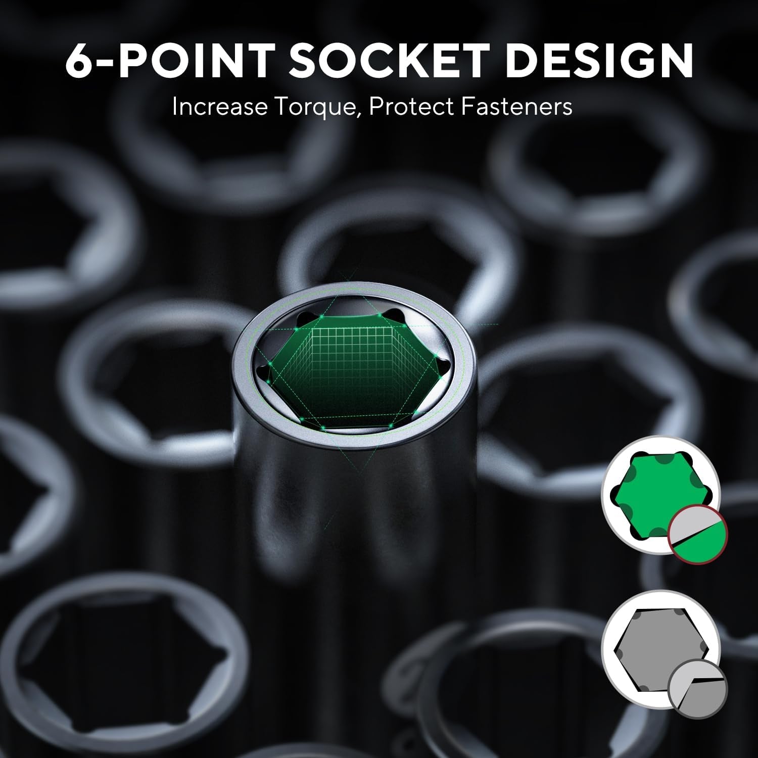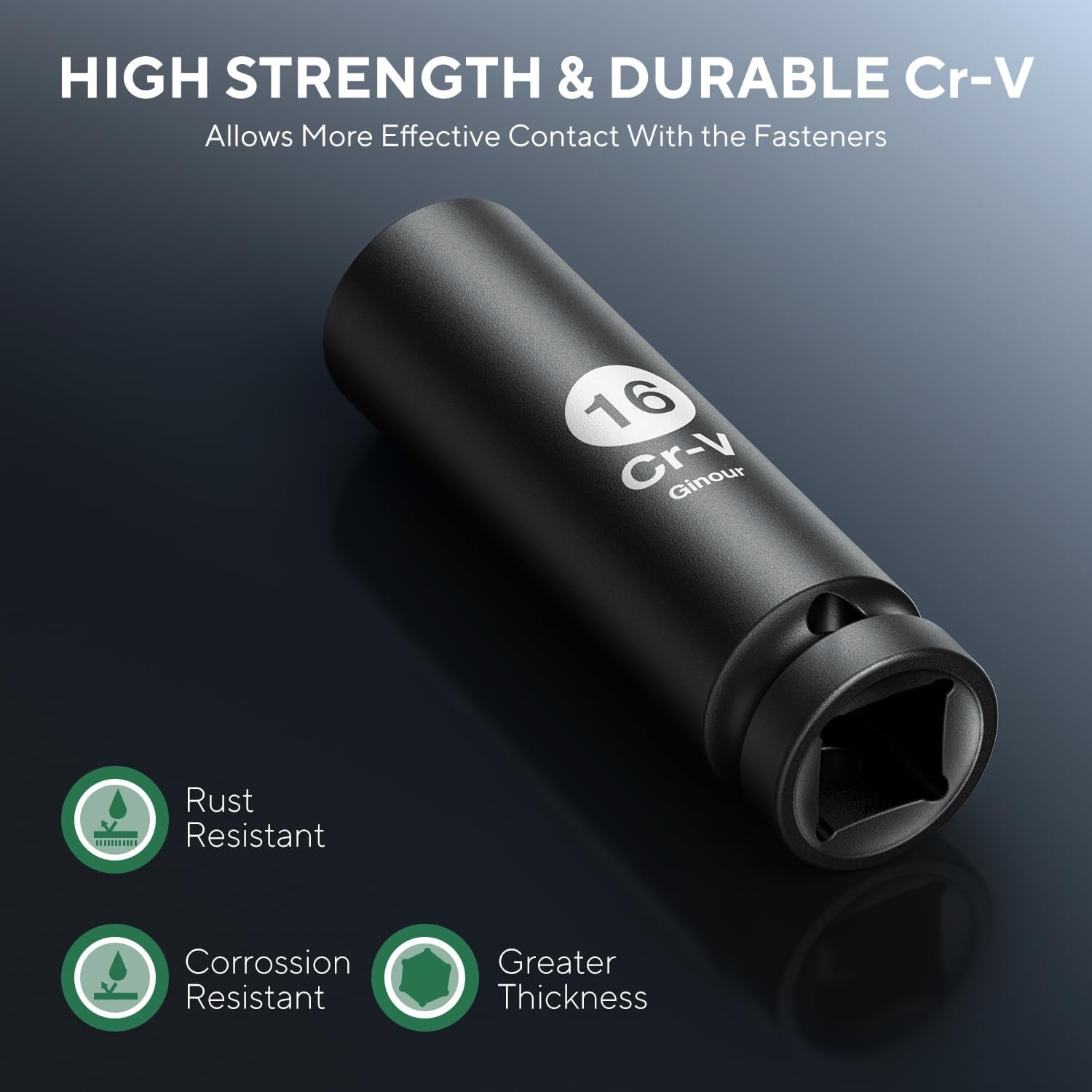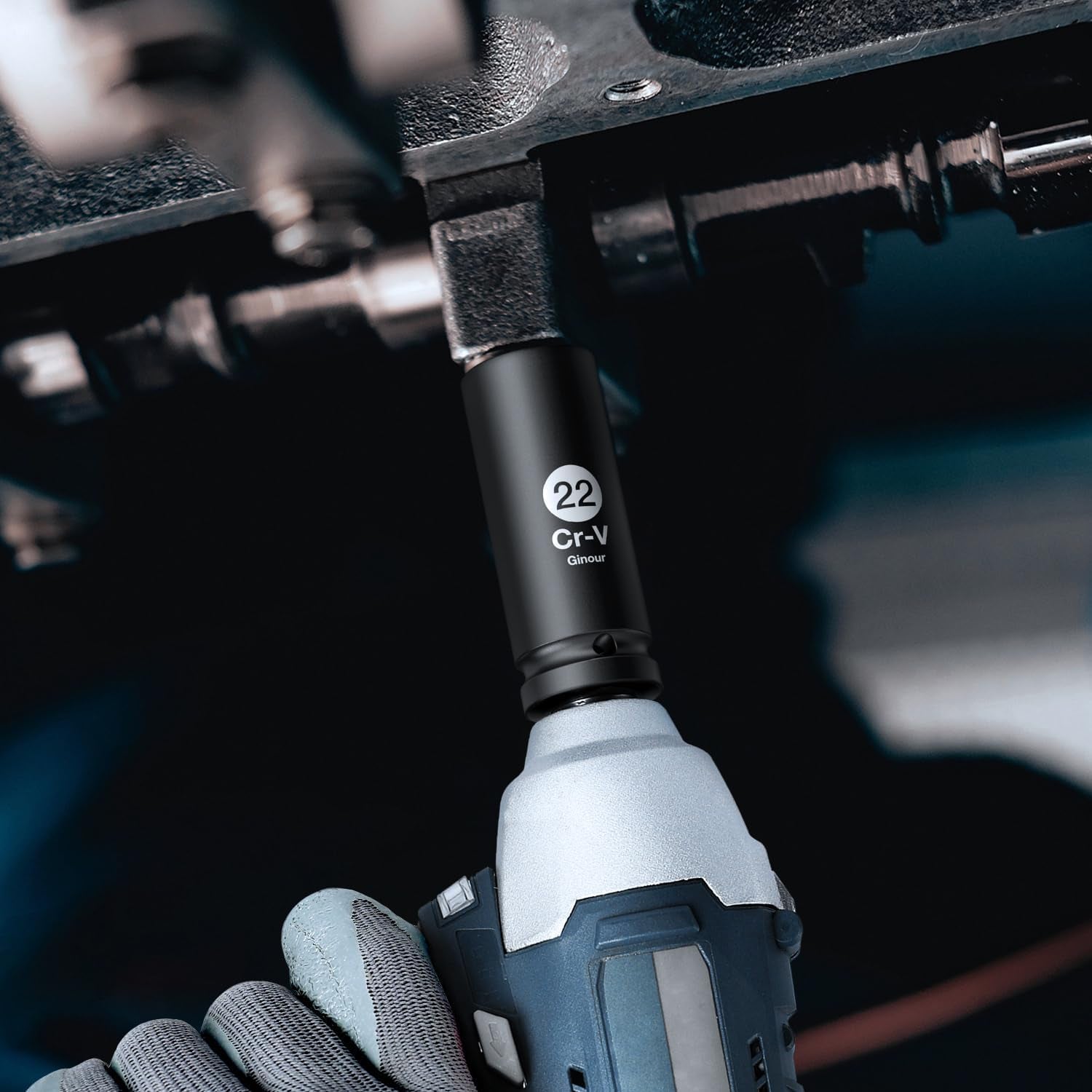 Ginour Impact Socket Set is indispensable around the home, garage, and workshop. In combination with turning tools such as wrenches, you can choose the right size socket set to loosen or tighten the nuts and bolts in the vehicle you are using. Save time and money for you.