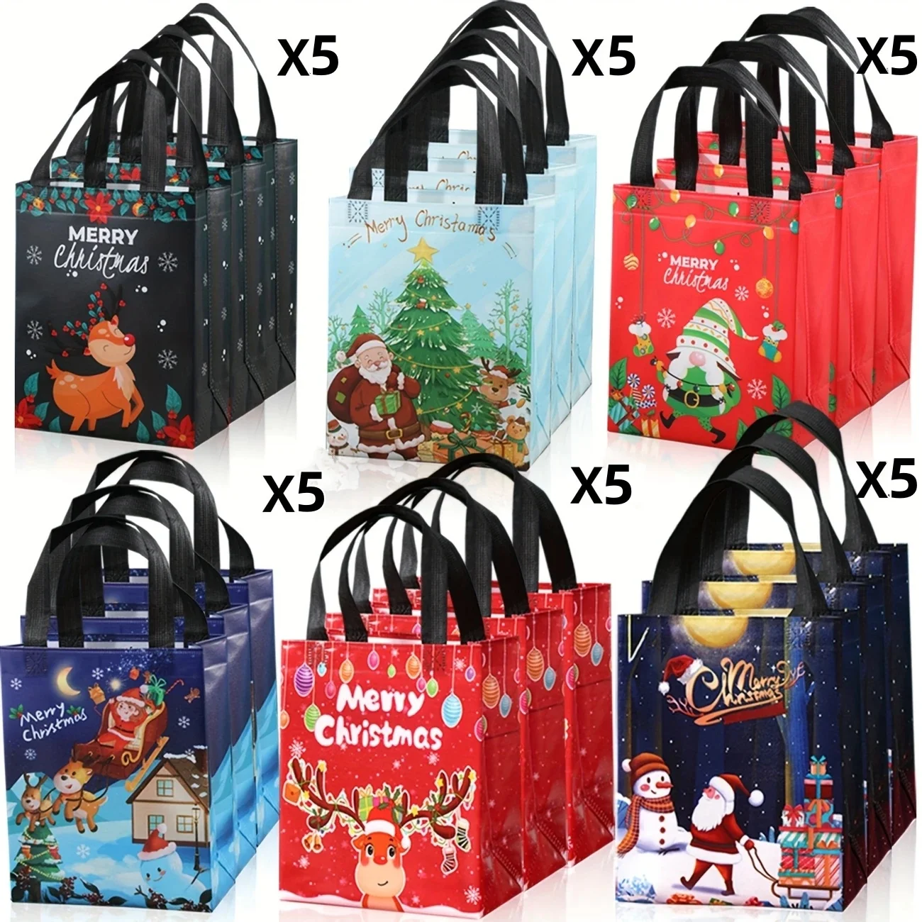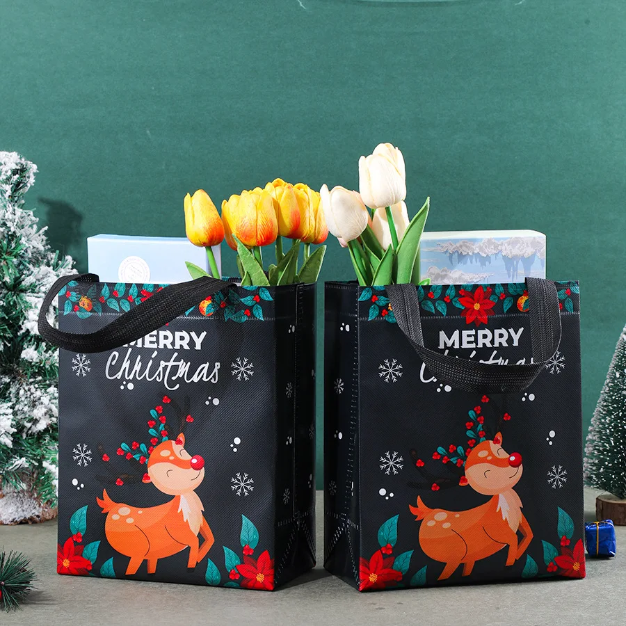 30Pcs Christmas Gift Bag with Handle, Large Capacity Christmas Satchel Gift Bag, Reusable Non-Woven Gift Bag, Grocery Shopping Bag, Holiday Party Gift Bag, Holiday Party Supplies Decoration