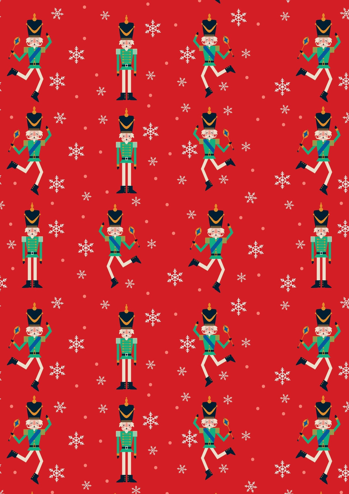 Set Of 4 Nutcracker Christmas Gift Wrap. 4M x 70cm with 16 Matching Gift tags.
