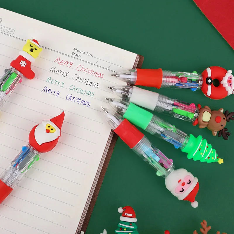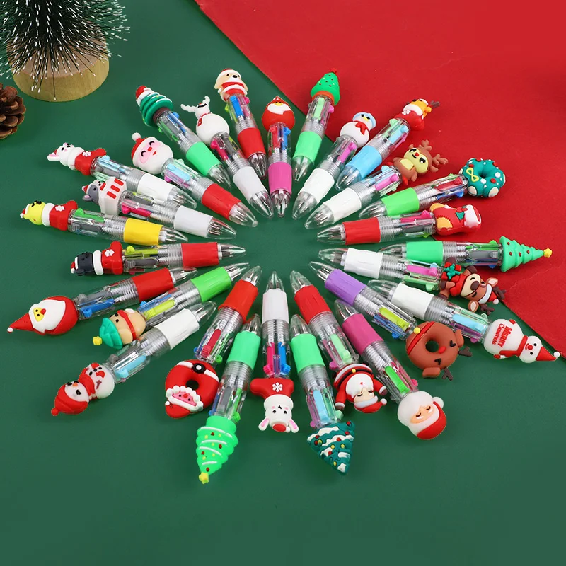 5-30Pcs Cartoon Christmas Pens Kids Birthday Party Christmas New Year Gift Favors Mini 4 Colors Ballpoint Pen Goodie Bag Stuffer