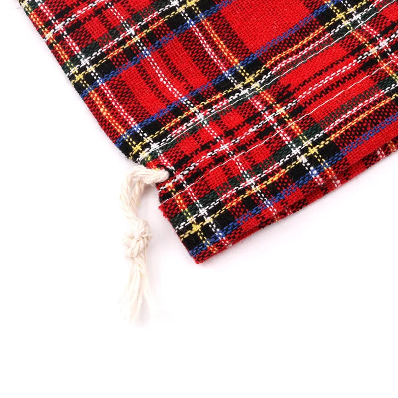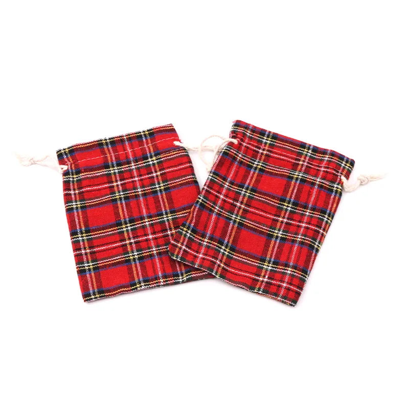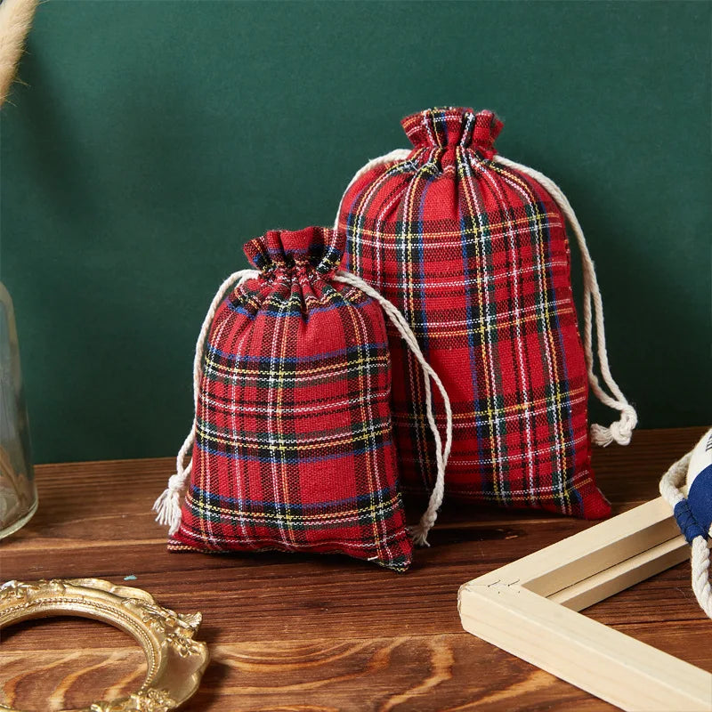 50pcs/lot 10x14cm, 13x18cm red plaid cotton and linen gift bag Christmas decoration supplies Candy gift wrapping drawstring bag