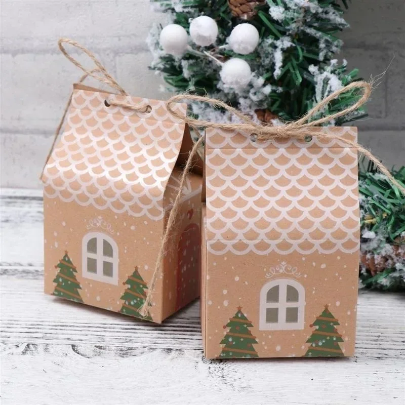 50pcs/Set Christmas Candy Box Party Xmas Decor House Shape Cookies Pouch Christmas Candy Box Kraft Paper Gift Bags Candy Box - 50pcs / other / UNITED KINGDOM is backordered and will ship as soon as it is back in stock.