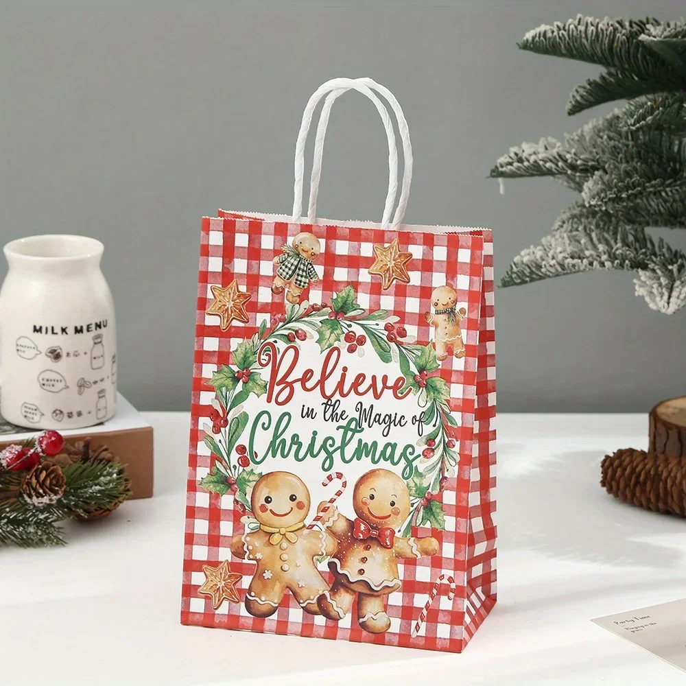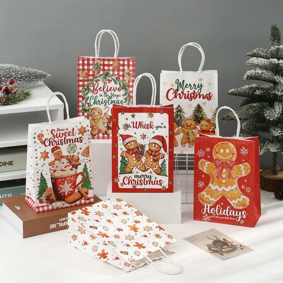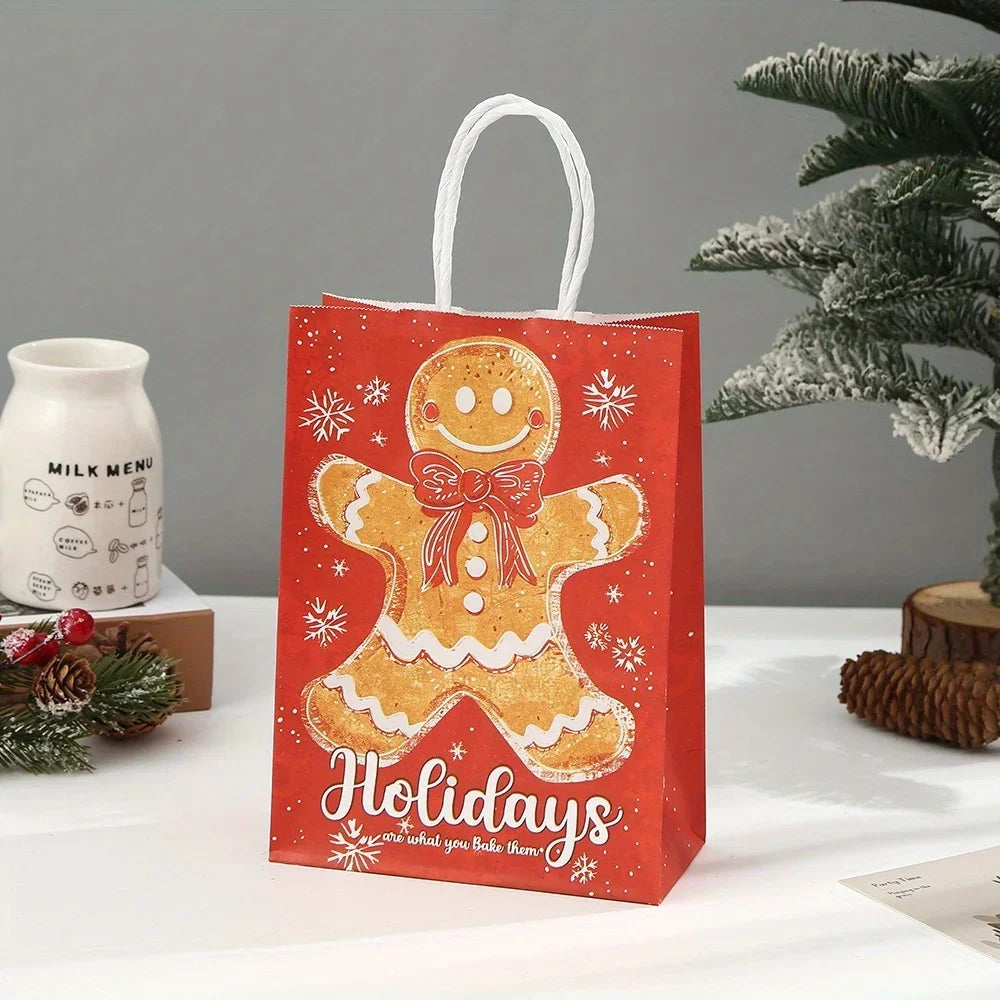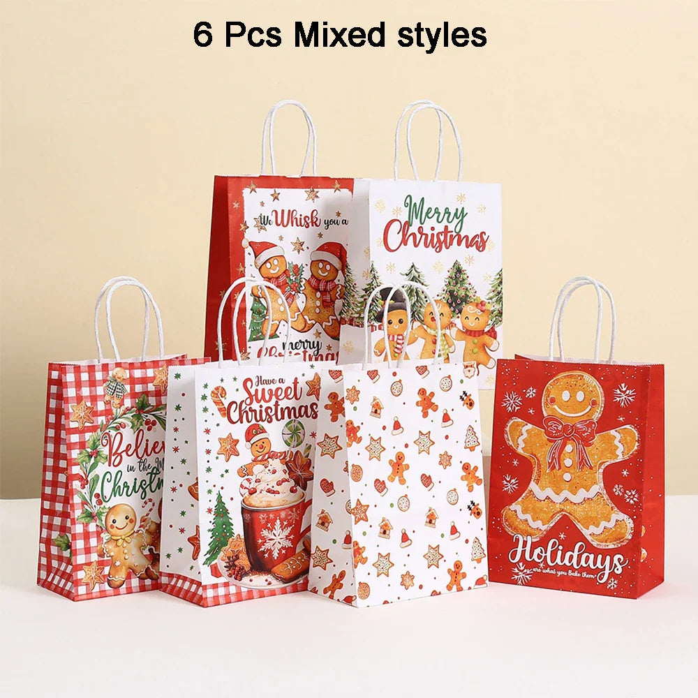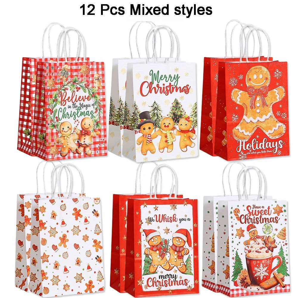 6/12Pcs Merry Christmas Paper Gift Bags Gingerbread Man Treat Bags with Handles Snowy Candy Goodie Bags Grocery Bags for Xmas - 6 Pcs Mixed styles / 21x15x8cm is backordered and will ship as soon as it is back in stock.