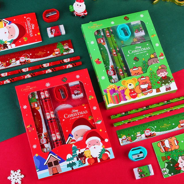 Each package contains 2 Christmas pencils, a rolling knife, a notebooka, a ruler and a rubber rubbing.