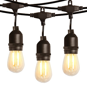 We adopted 2W LED Filament Bulbs, equivalent to 20W traditional incandescent bulbs. Our string lights have an average lifespan of 30,000 hours.