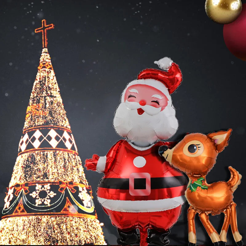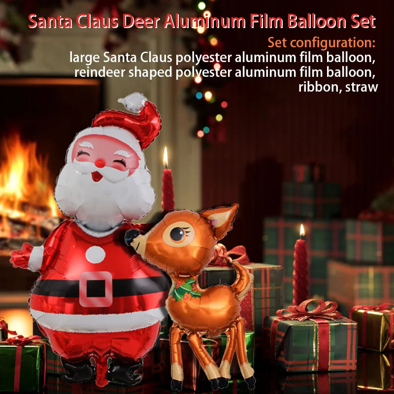 Aluminum foil balloon set for Santa Claus and Little Deer, Christmas Happy balloon decoration set suitable for Christmas
