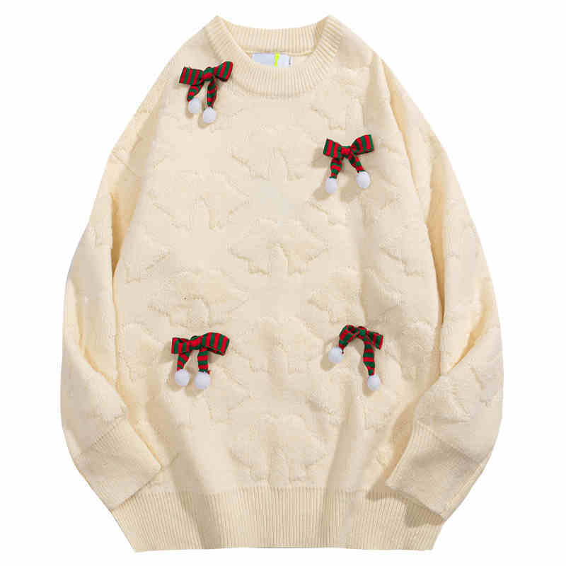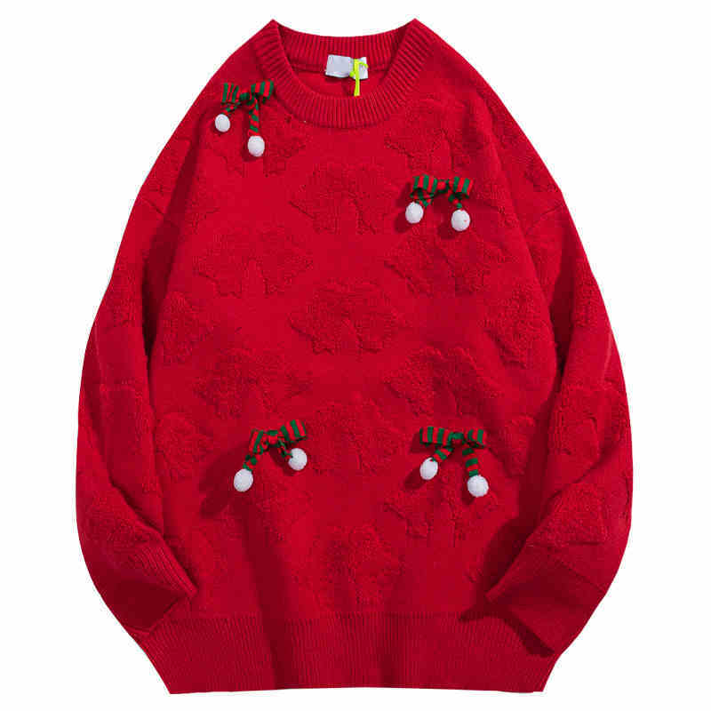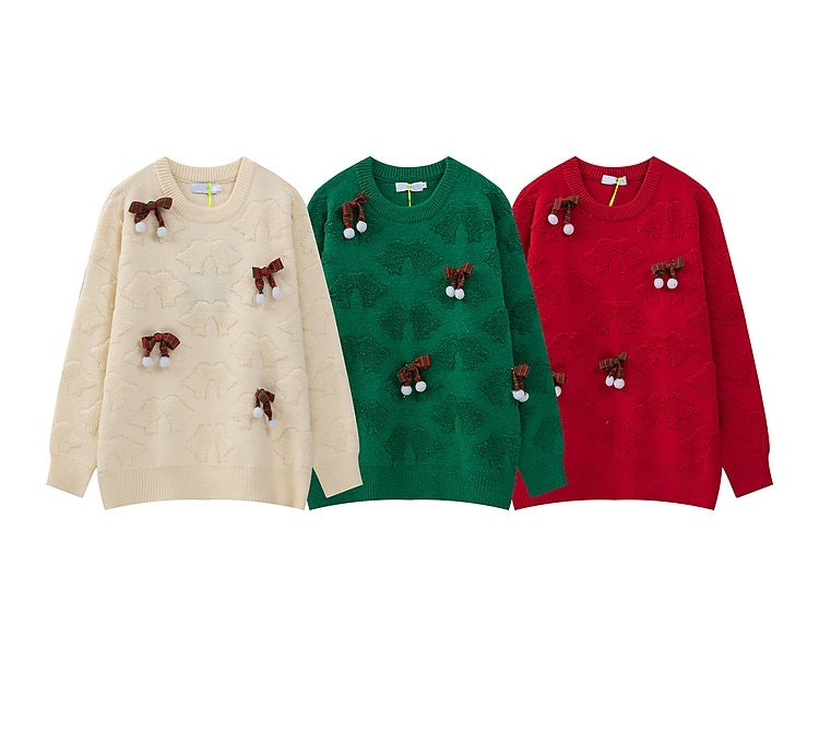 Bowknot Flocking Three-dimensional Decoration Couple Christmas Sweater - Red / S is backordered and will ship as soon as it is back in stock.