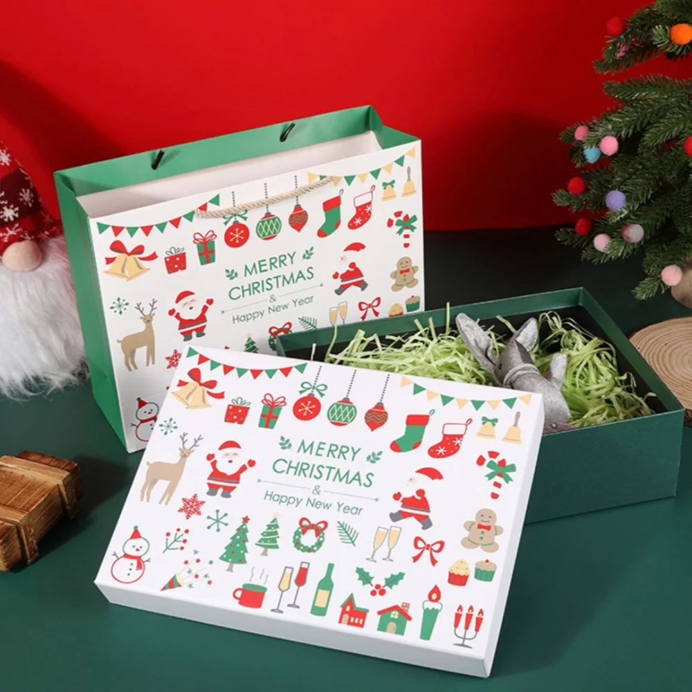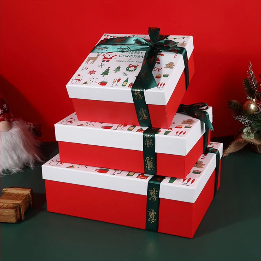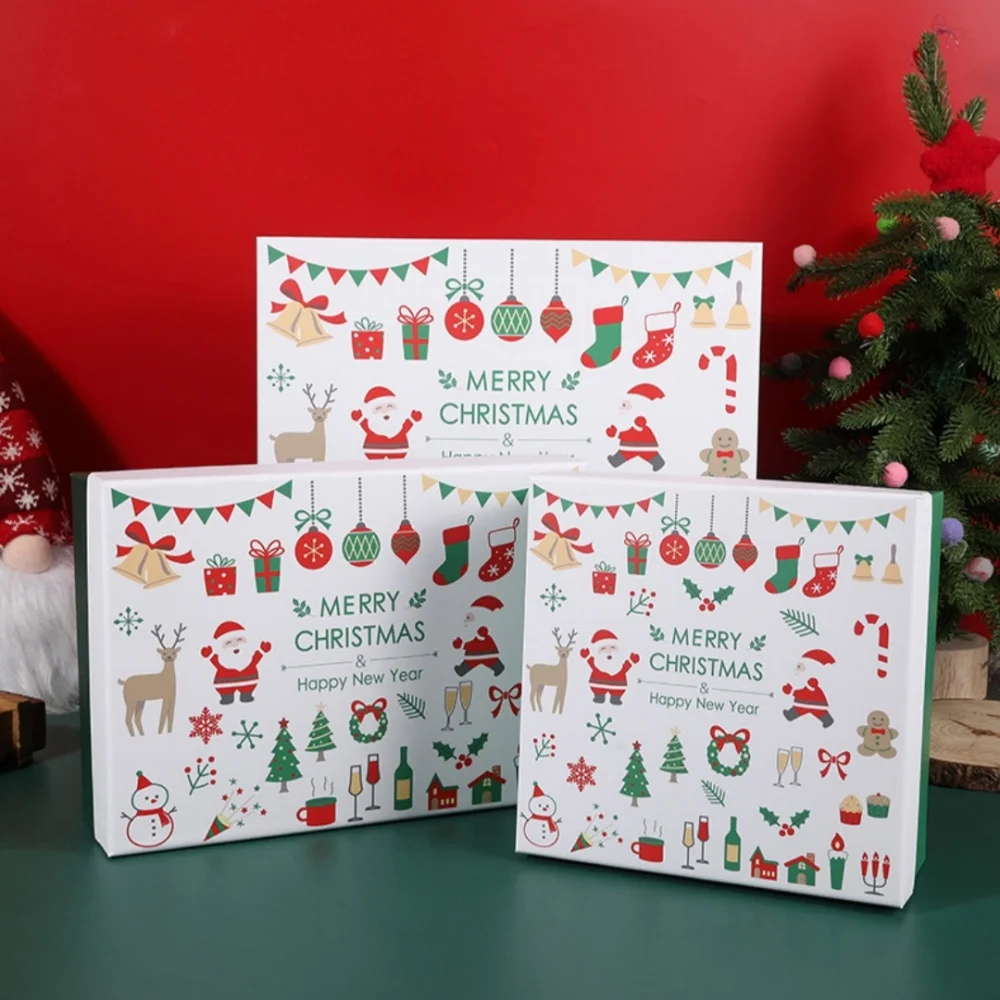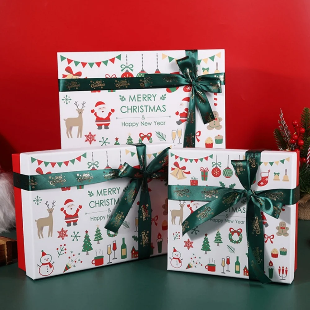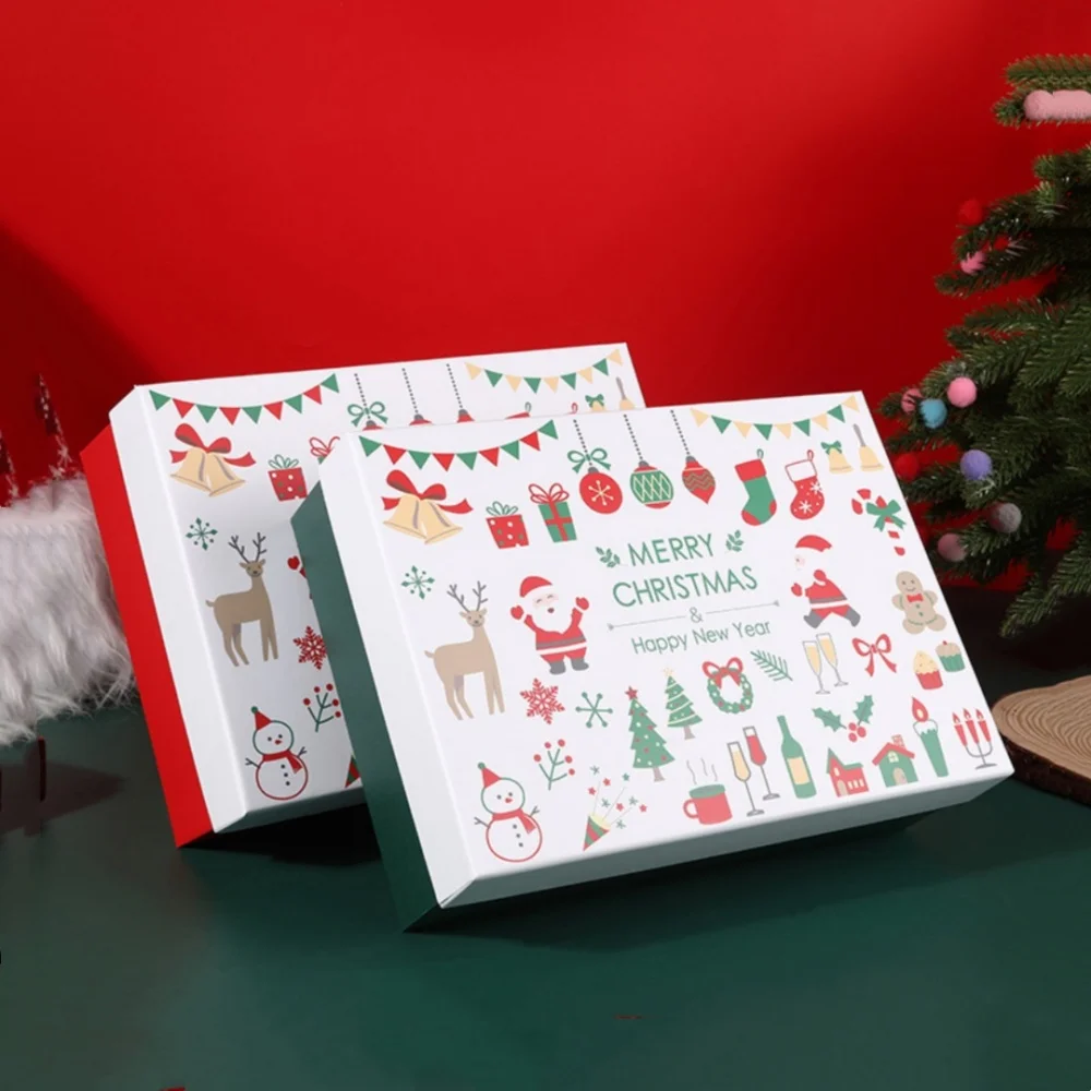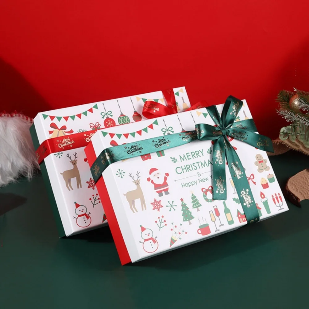 Creative Christmas Cookie Boxes For Snowflakes Nougat Candy Gift Packaging Happiness New Year Gift for Kids. Red bow ribbon Christmas gift box scarf hat packaging box large size green Christmas gift box.