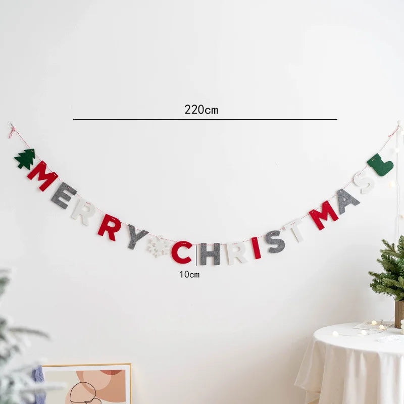 Merry Christmas Felt Banners Flags Hanging Garlands for Xmas Ornaments Holiday Home Party Decoration Navidad New Year 202