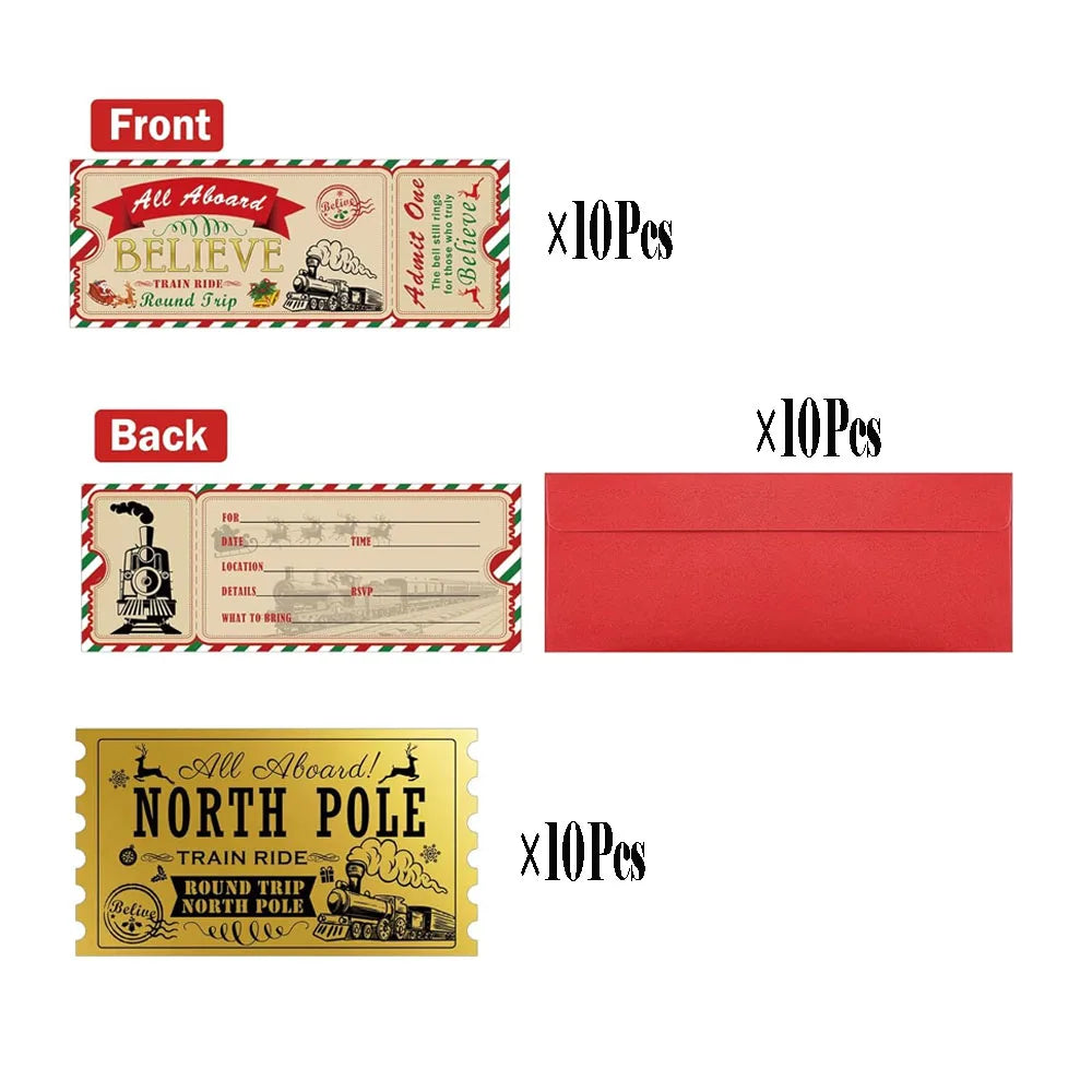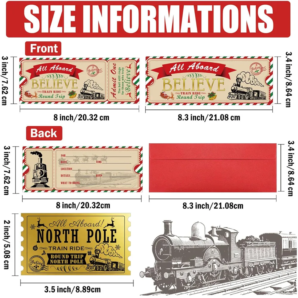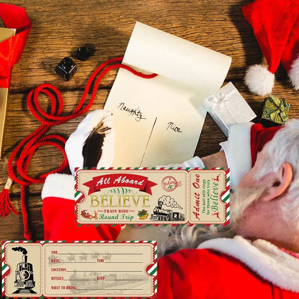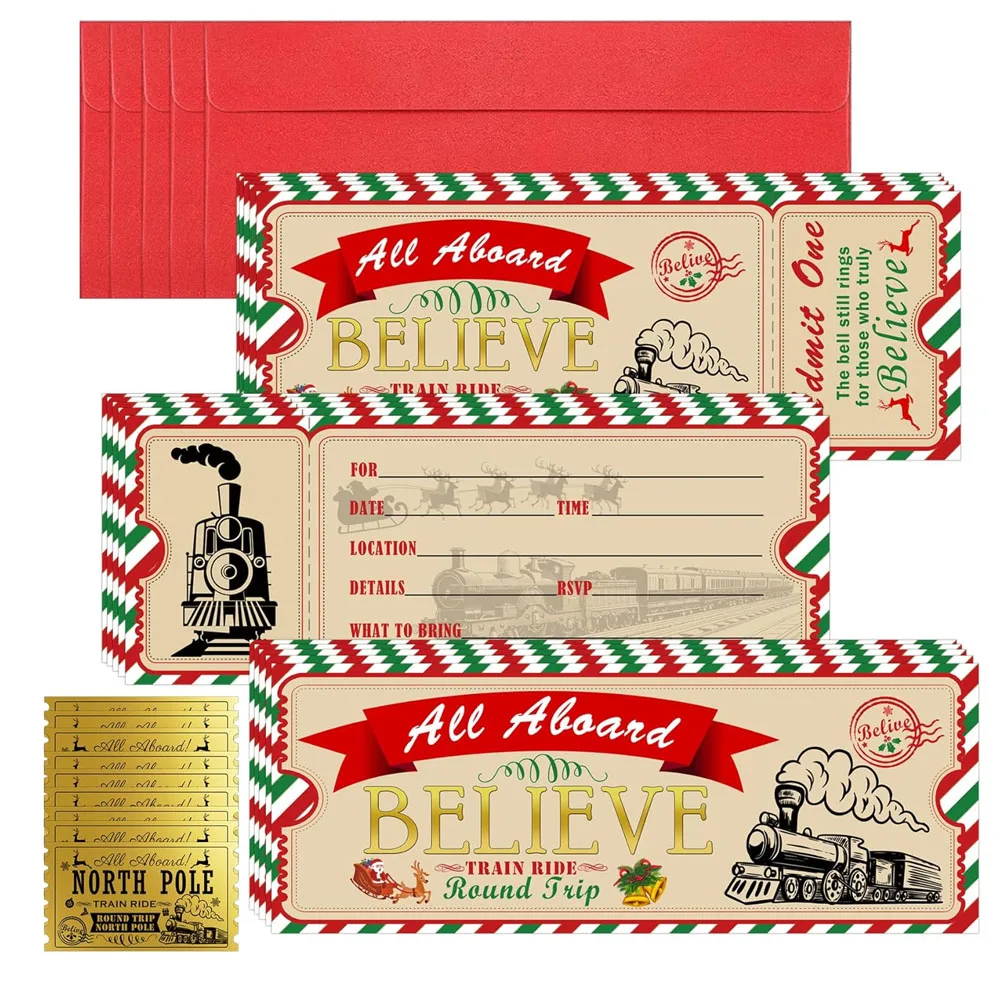Christmas Believe Train Ticket Invitations Card Vintage Believe Train Invitations with Envelopes Christmas Believe Ticket 10Pack