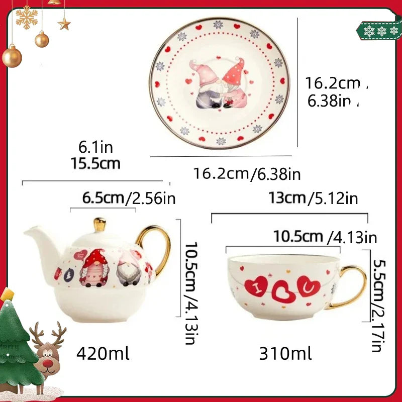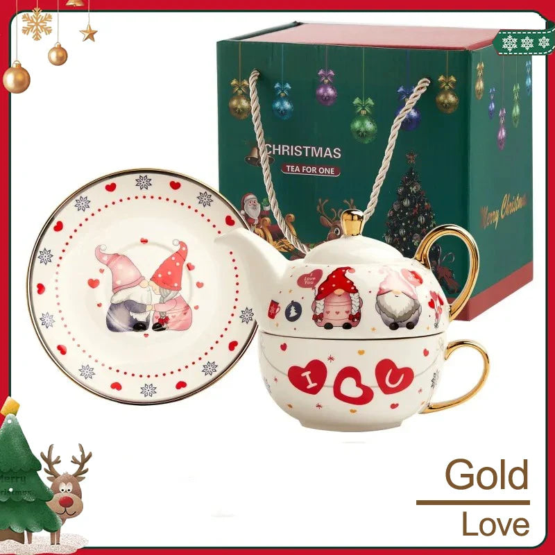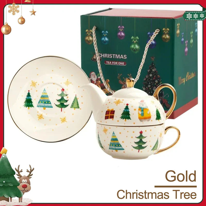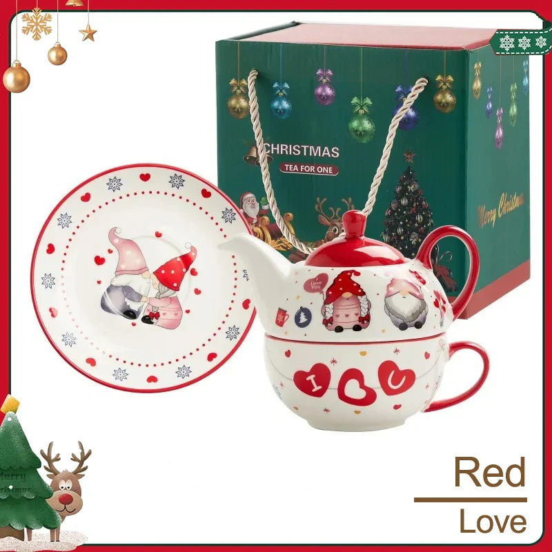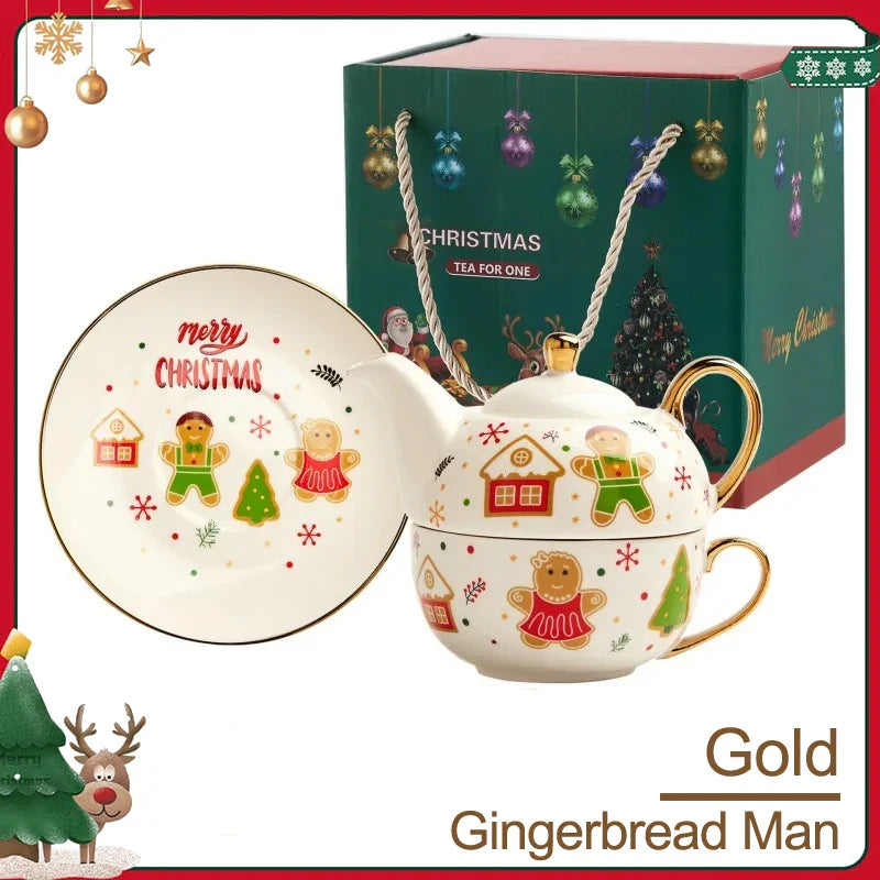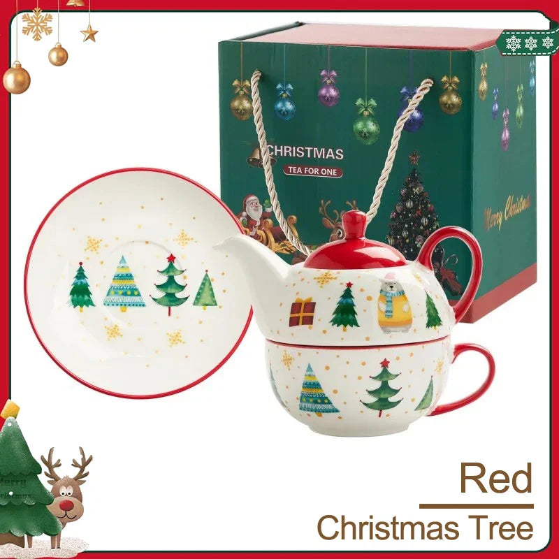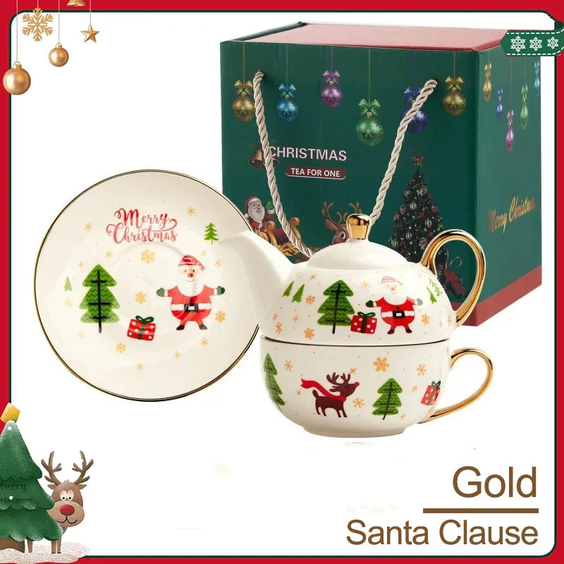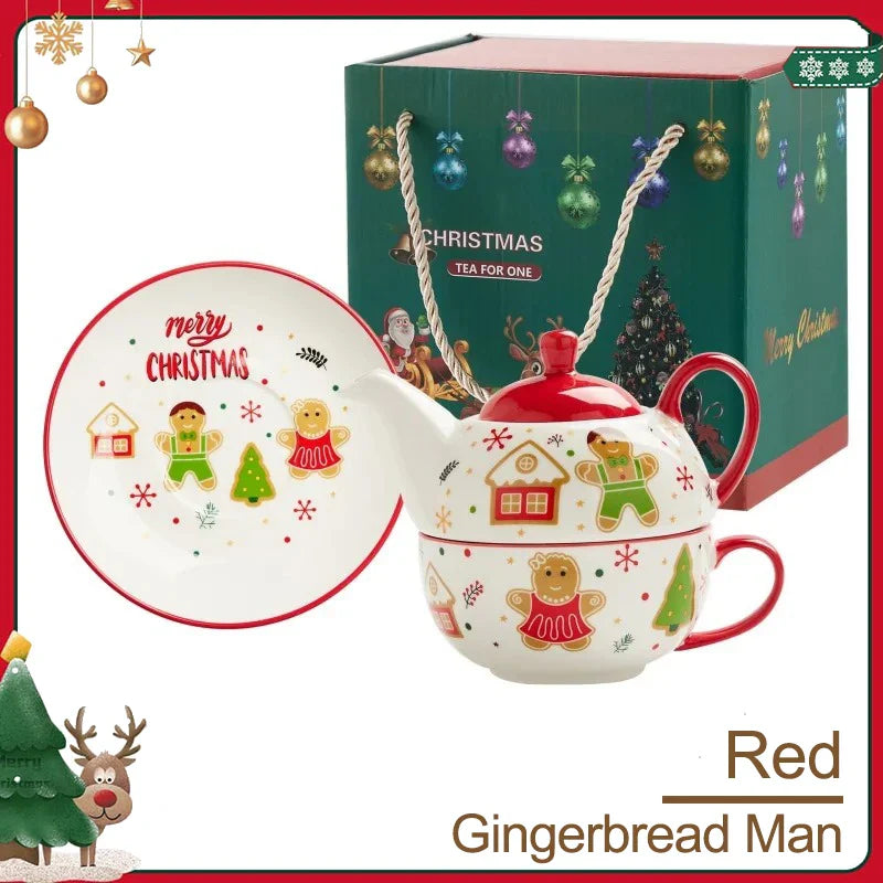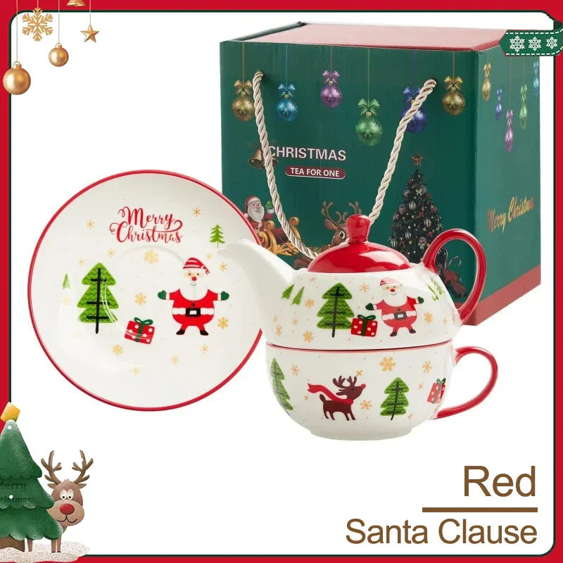 Christmas Ceramic Teapot Mug Gift Teaware Set Drinkware Party Santa Claus Coffee Cup with Lid Cartoon Cute Ceramic Mug Tea Cup