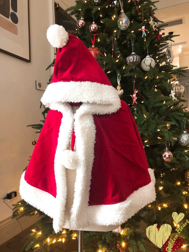 Christmas cloak red fur velvet hooded windproof - S is backordered and will ship as soon as it is back in stock.