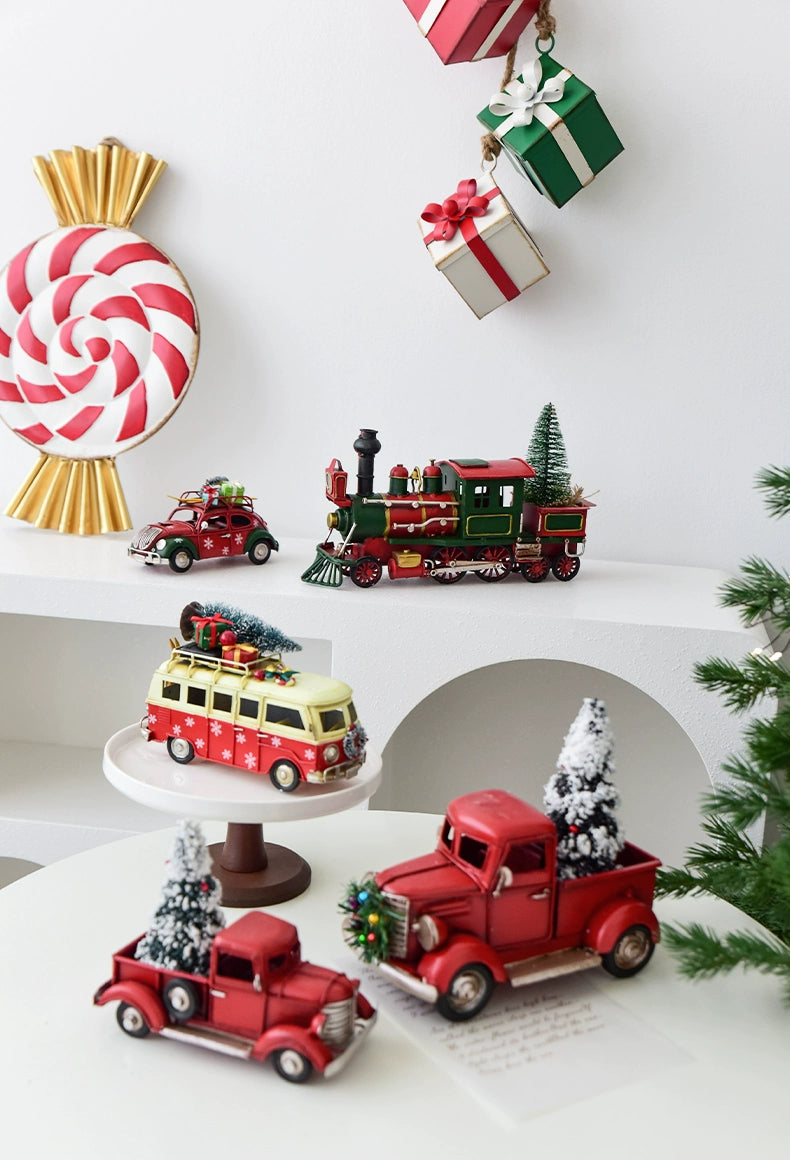 Christmas decorations high-end metal truck Christmas bus train ornaments - Large truck is backordered and will ship as soon as it is back in stock.