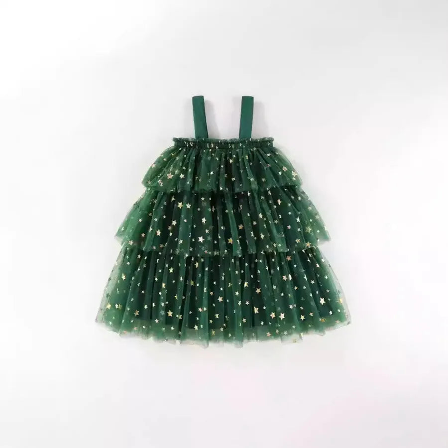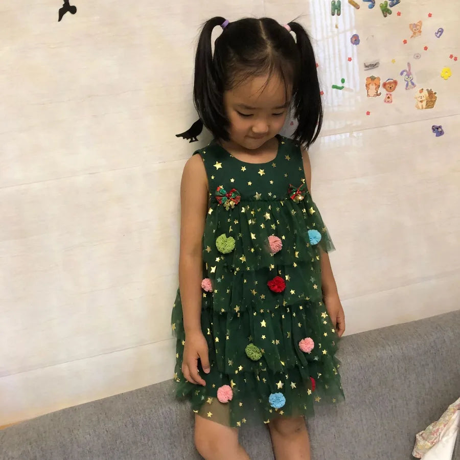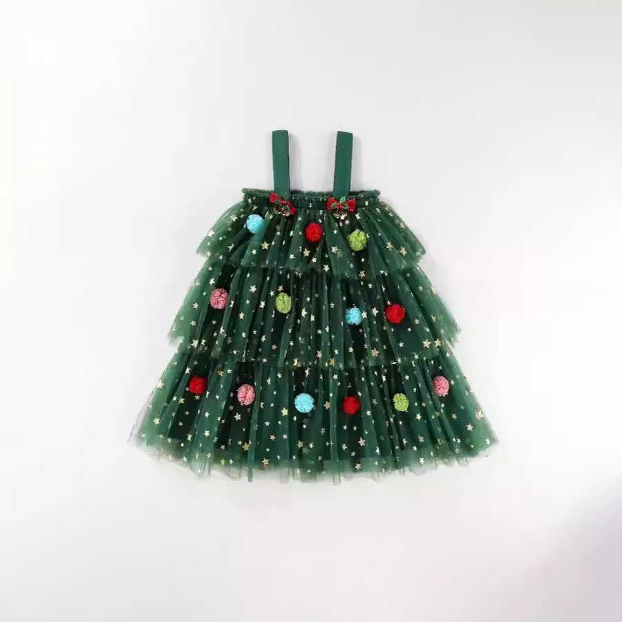 Christmas Elegant Cute Christmas Tree Nylon Girls Dresses - Green / 120cm is backordered and will ship as soon as it is back in stock.