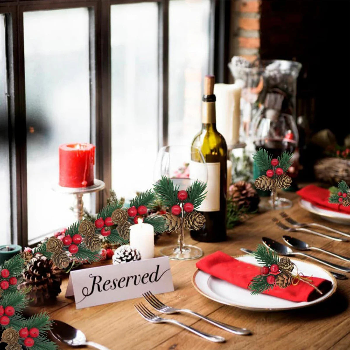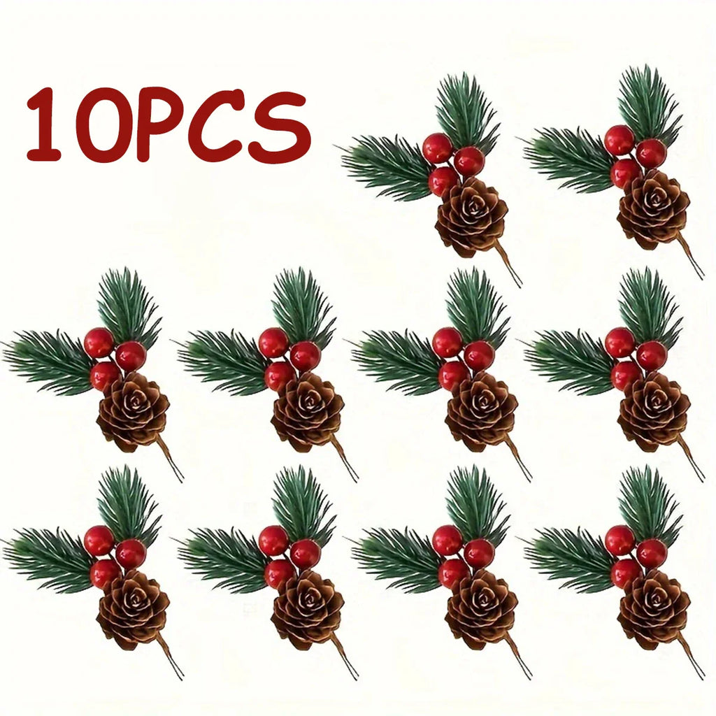 Christmas Floral Picks, 10Pcs Pine Cone Holly Berry Stems for Artificial Christmas Picks and Sprays, Red Berry Branches Greenery
