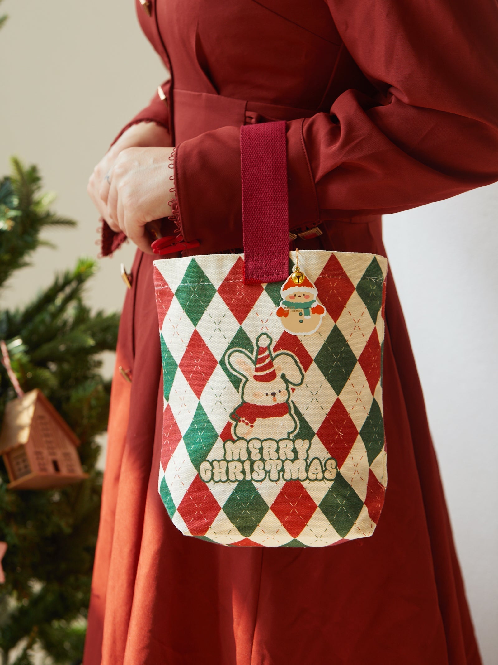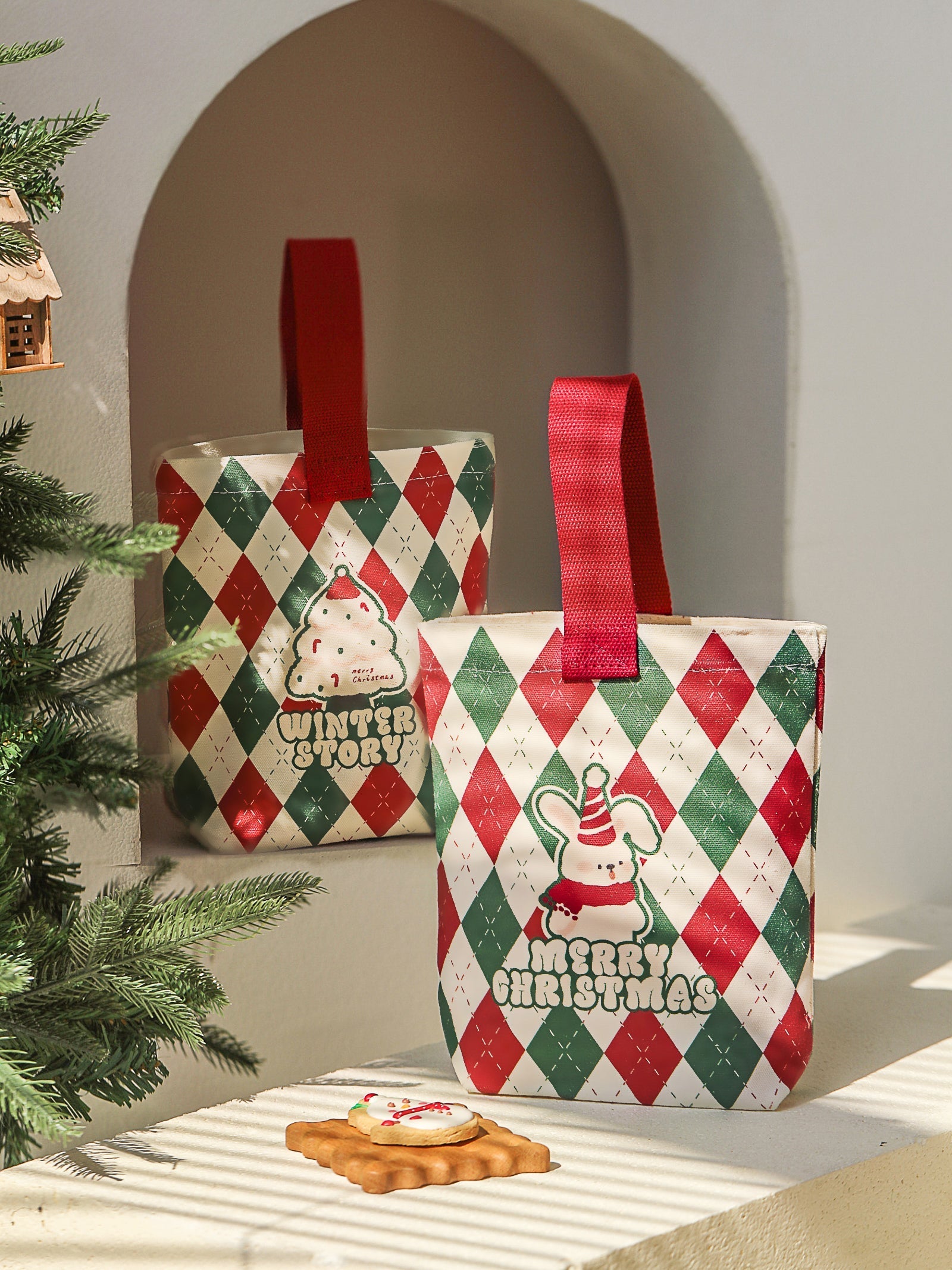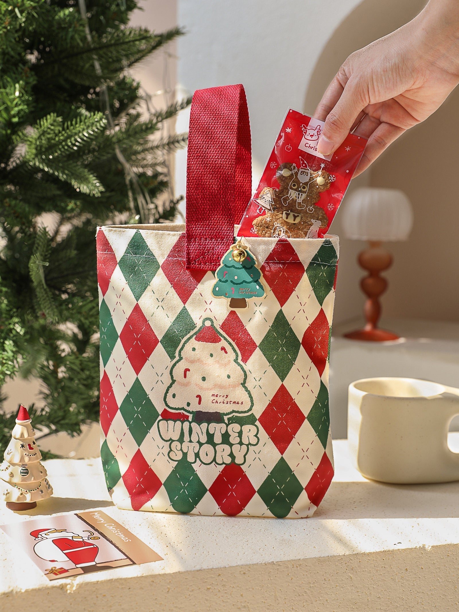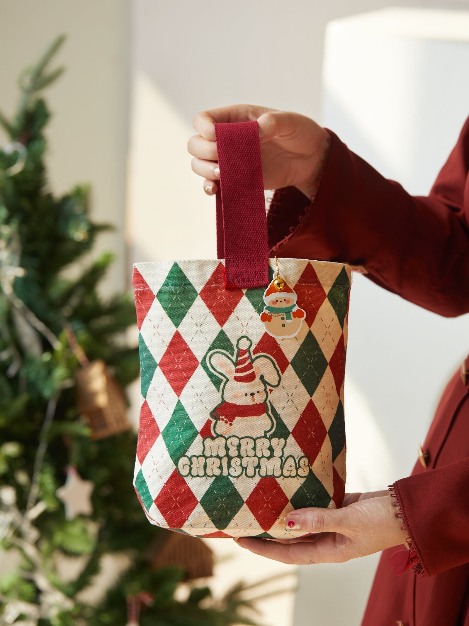 Christmas gift bag souvenir baked snack packaging bag - Christmas diamond-shaped contrasting canvas bag 1 piece/piece without accessories / View image is backordered and will ship as soon as it is back in stock.