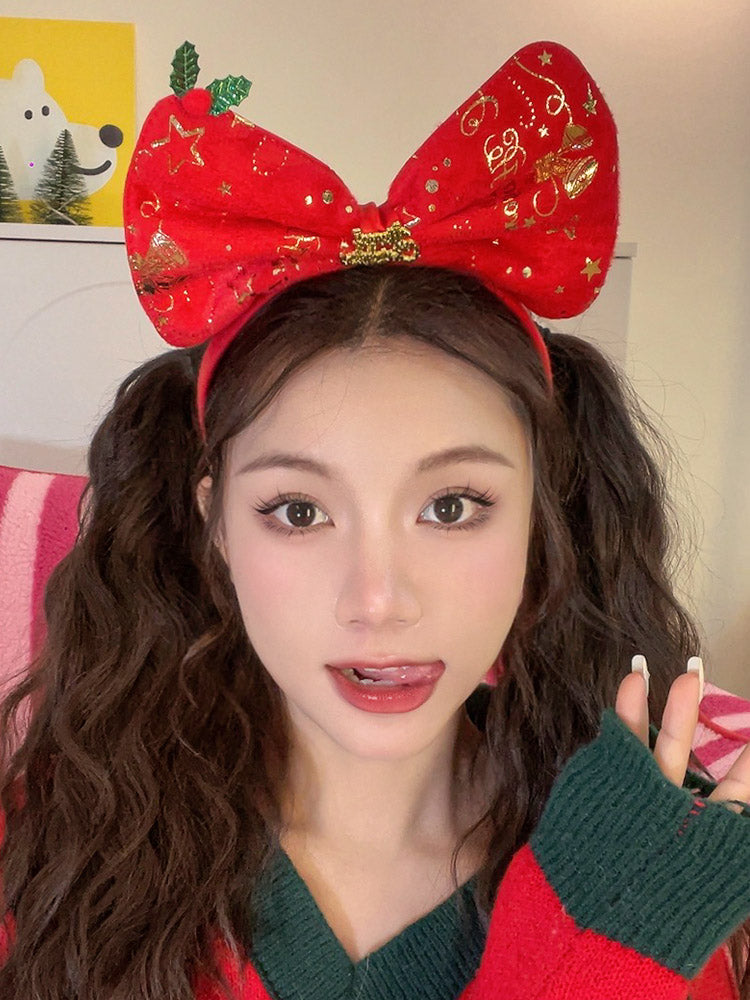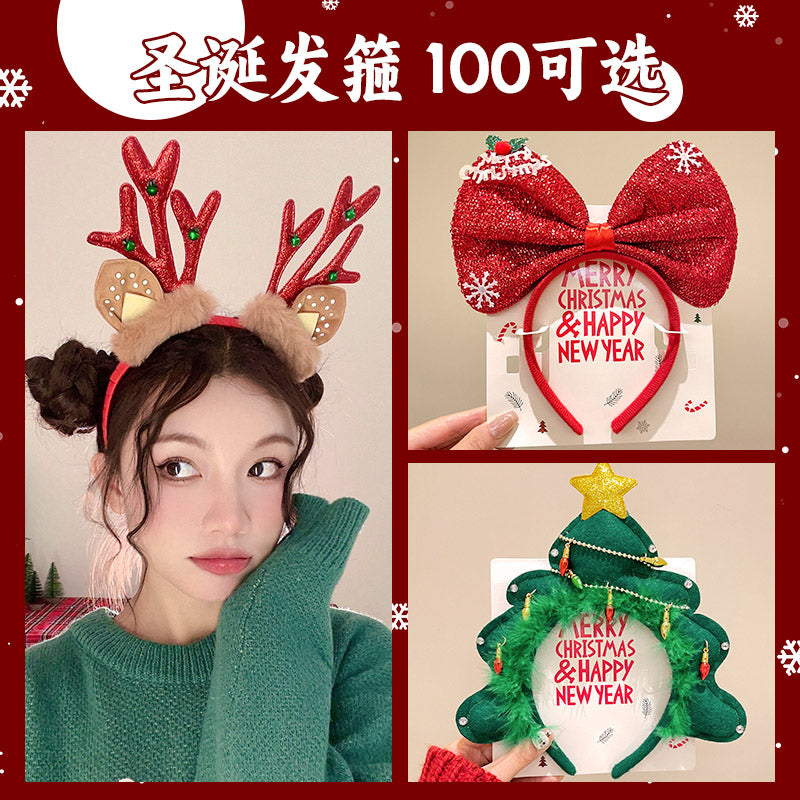 Christmas headband deer antler hairpin headdress - Big Bow Crystal Silk Christmas Red is backordered and will ship as soon as it is back in stock.