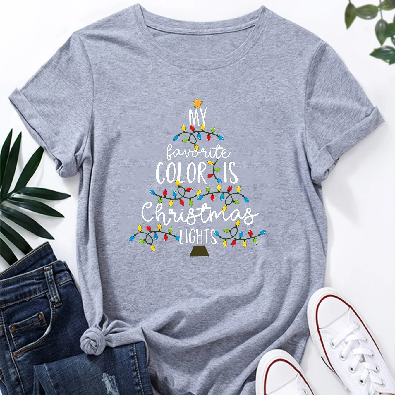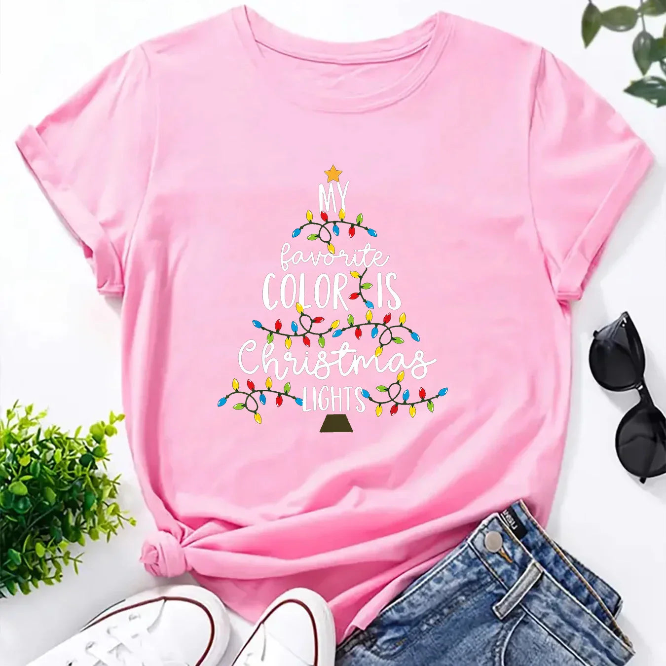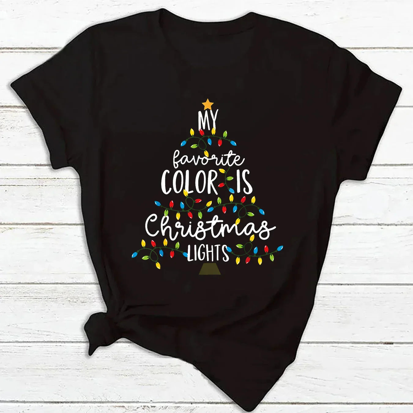 Christmas Lights Print Fun Short Sleeve Casual T Shirt - BK-501459 / S is backordered and will ship as soon as it is back in stock.