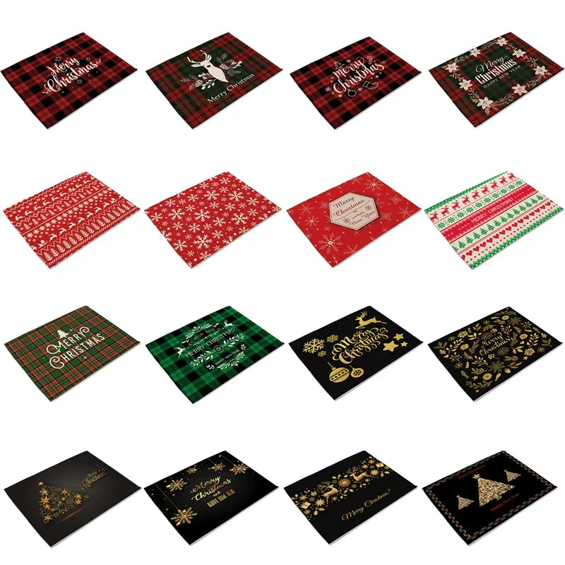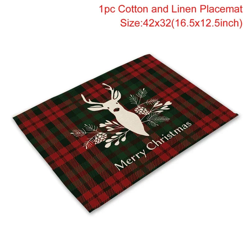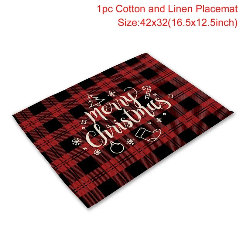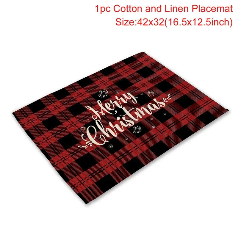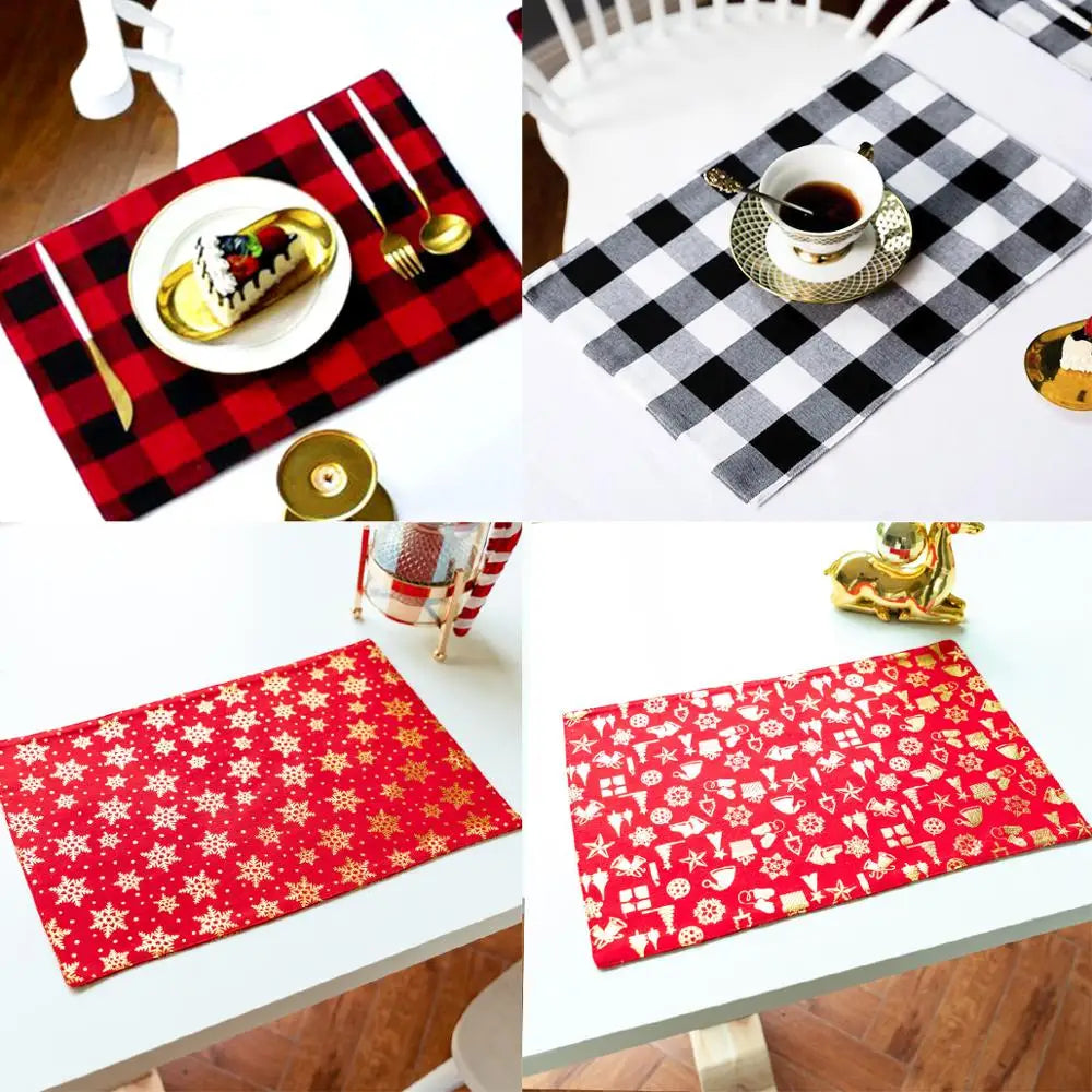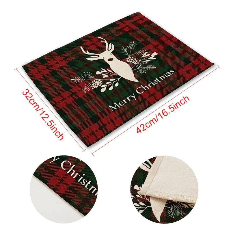 Christmas Printing Checked Waterproof Polyester Linen Table Mat - Placemat 1 is backordered and will ship as soon as it is back in stock.