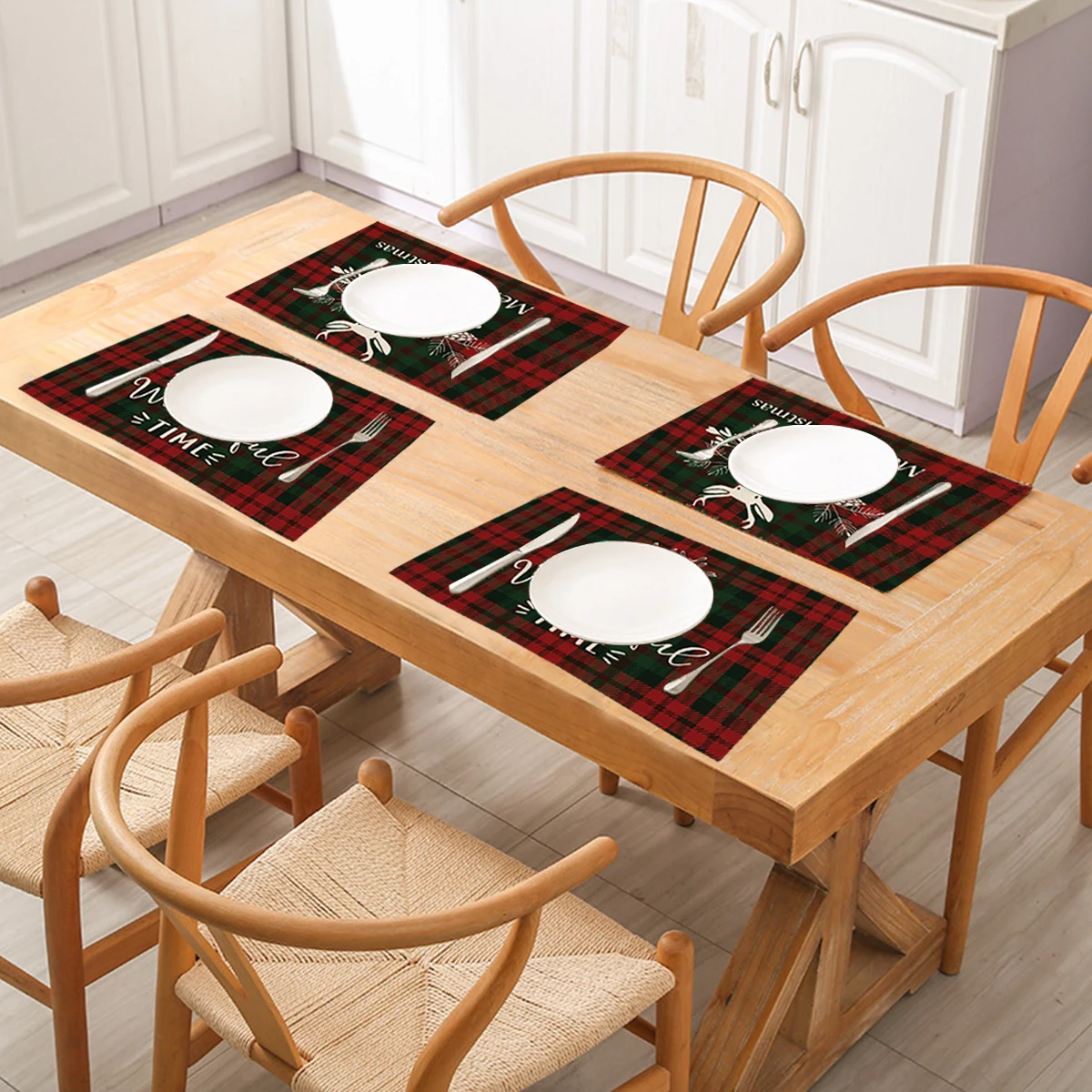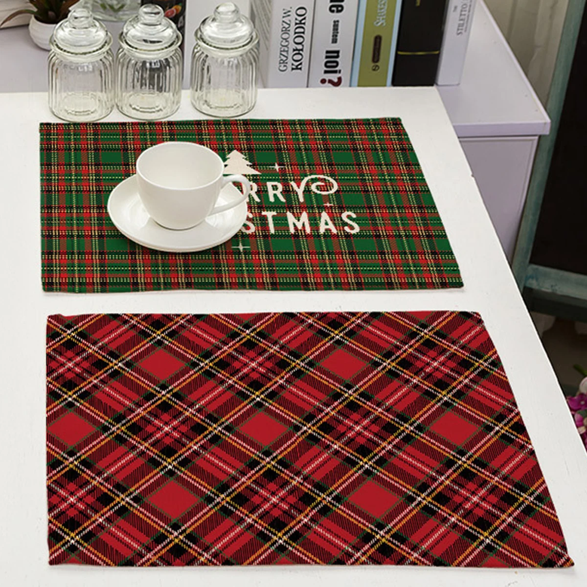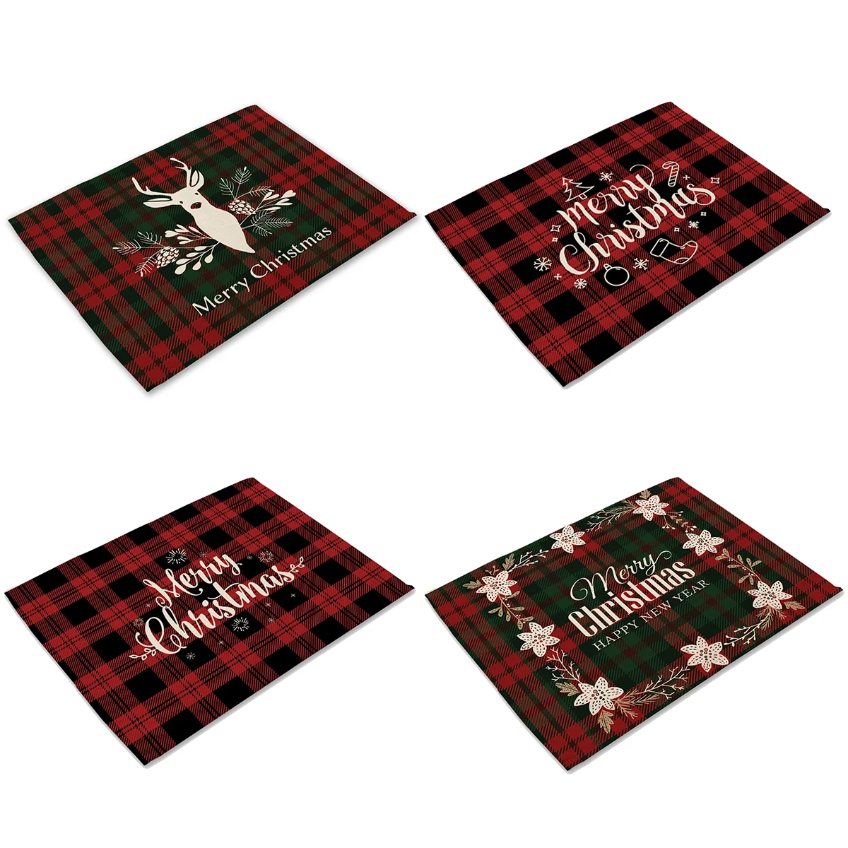 Christmas Printing Checked Waterproof Polyester Linen Table Mat - Placemat 1 is backordered and will ship as soon as it is back in stock.