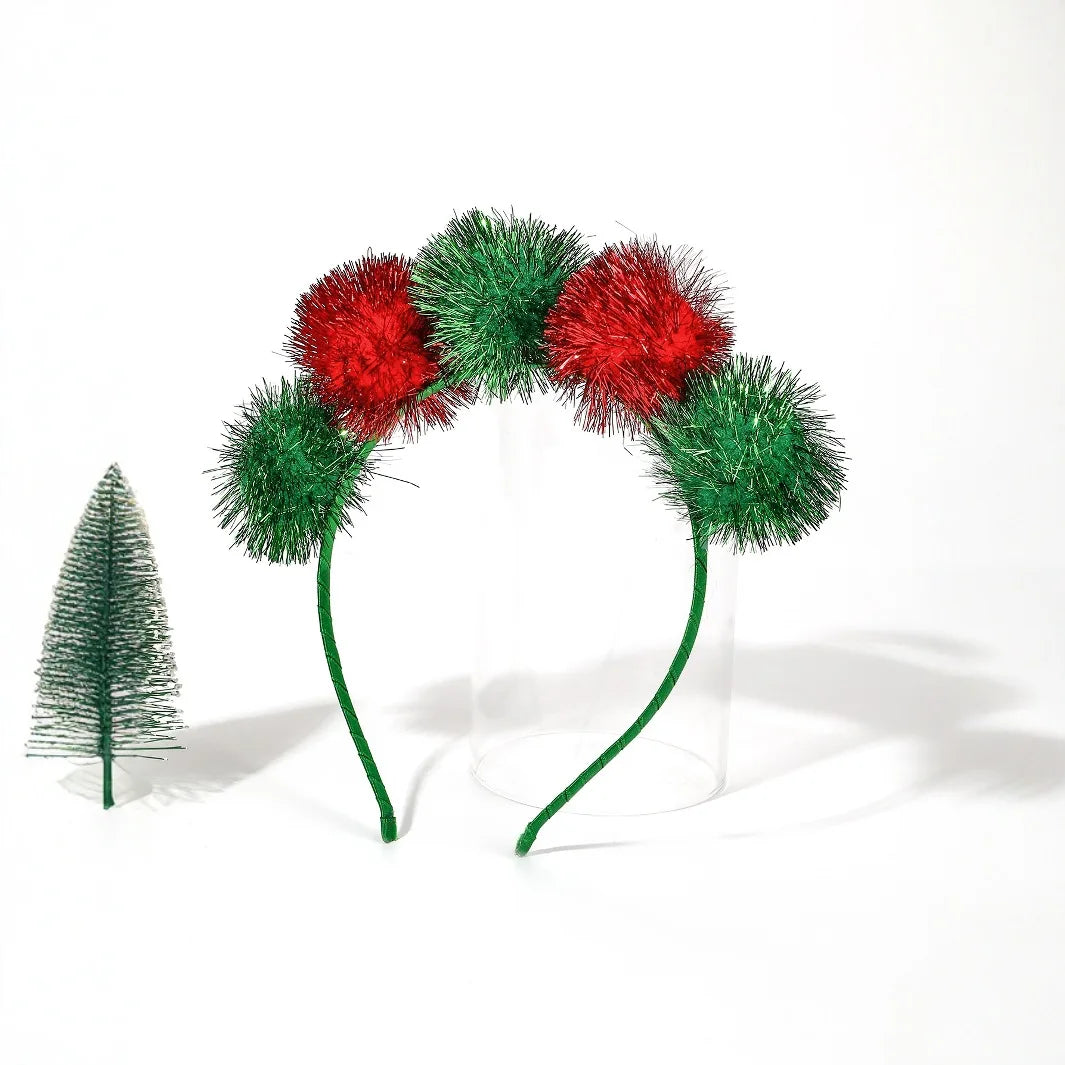 Christmas Red Green Hair Ball Holiday Party Headwear Hair Accessories Headband New Year Party Holiday Festival