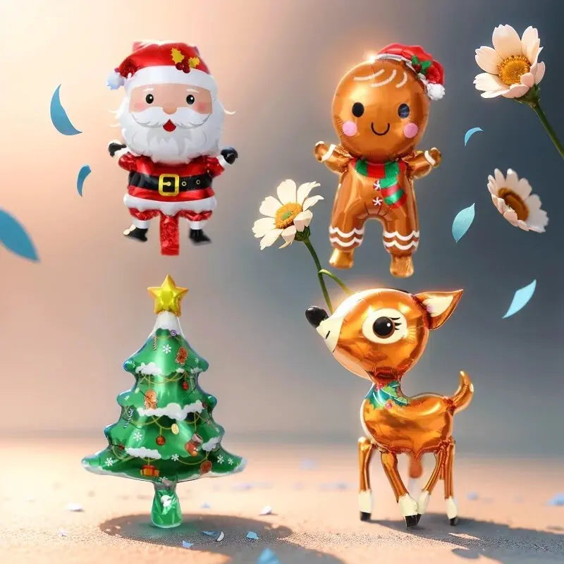 Christmas Balloons: 1) Christmas Boy, 2) Christmas Tree, 3) Santa Claus, 4) Christmas Reindeer